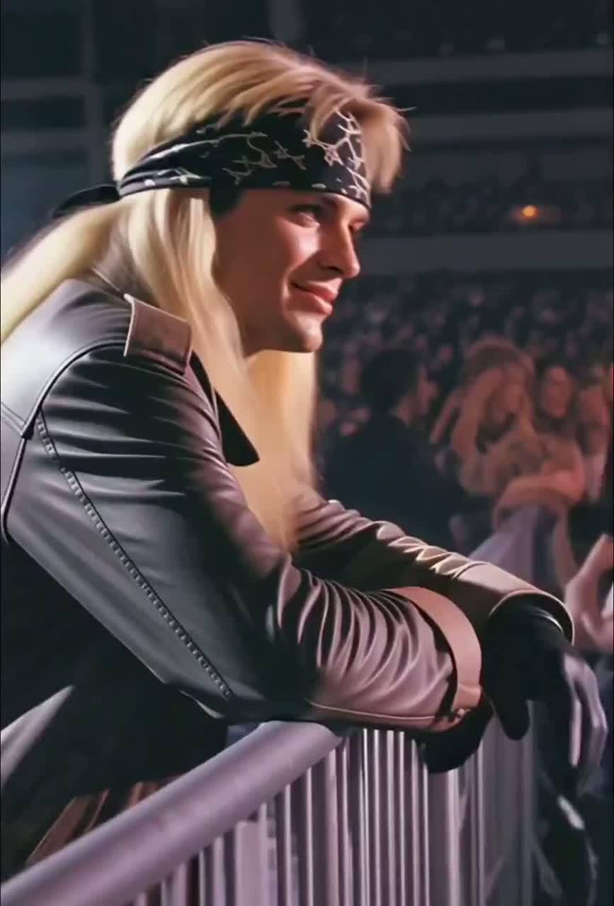 Clear 80s-style delivery with light rasp in The Style Of Bret Michaels, Playful shouts and smiles in the voice