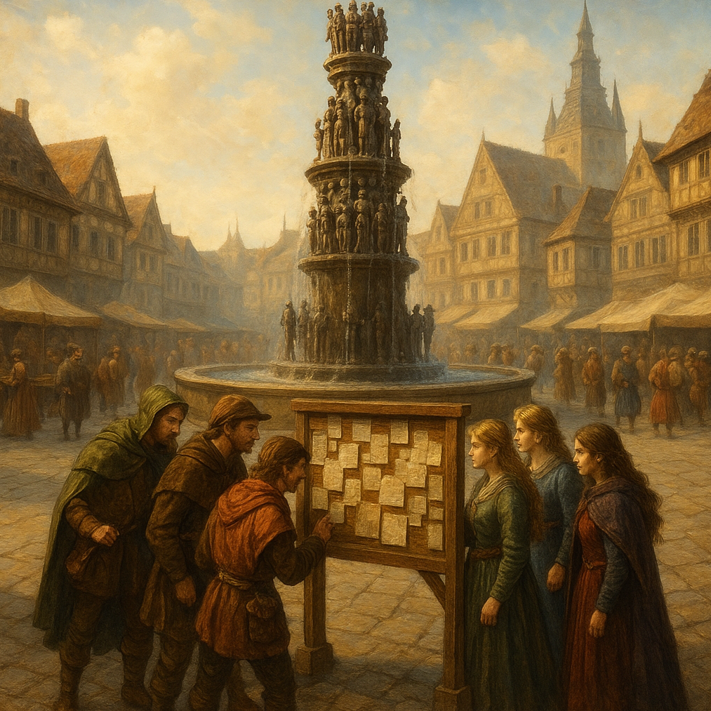 Style: Medieval-electronic fusion with rap narration and folk chorus, Instruments: Harp, acoustic guitar, folk strings, choir pads, dark ambient beats, tribal percussion, soft synths, Vocals: