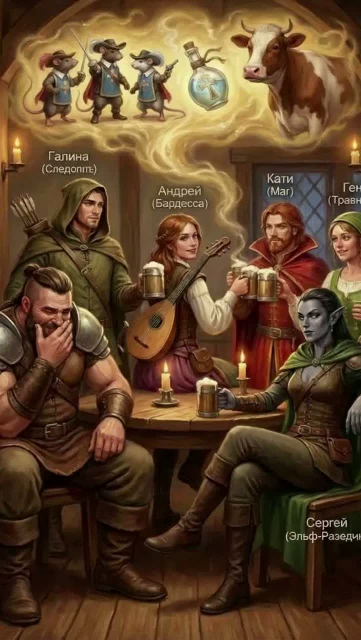 Verses: Alternating male and female narration, storytelling focus, Chorus: Sung by female folk vocals, epic and cinematic, main refrain, Hook: Strong contrast, First part serious (RPG role assignment), then sudden shift to playful rap section with lighter beat, Highlight the irony, Instrumental/Break: Use dark ambient beats, tribal percussion, soft synths for transitions, Outro: Female folk chorus fades out, harp and synth resonance remain