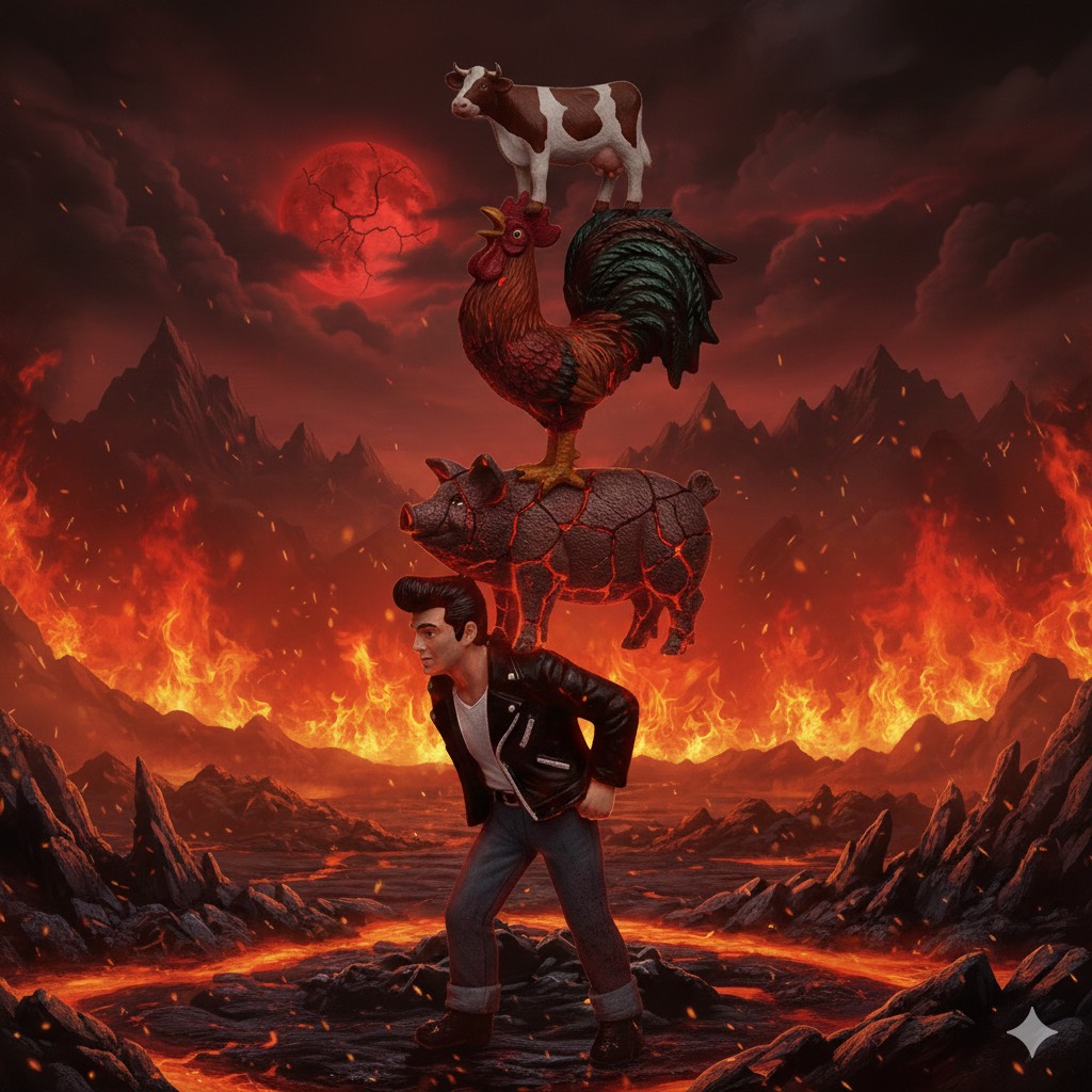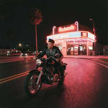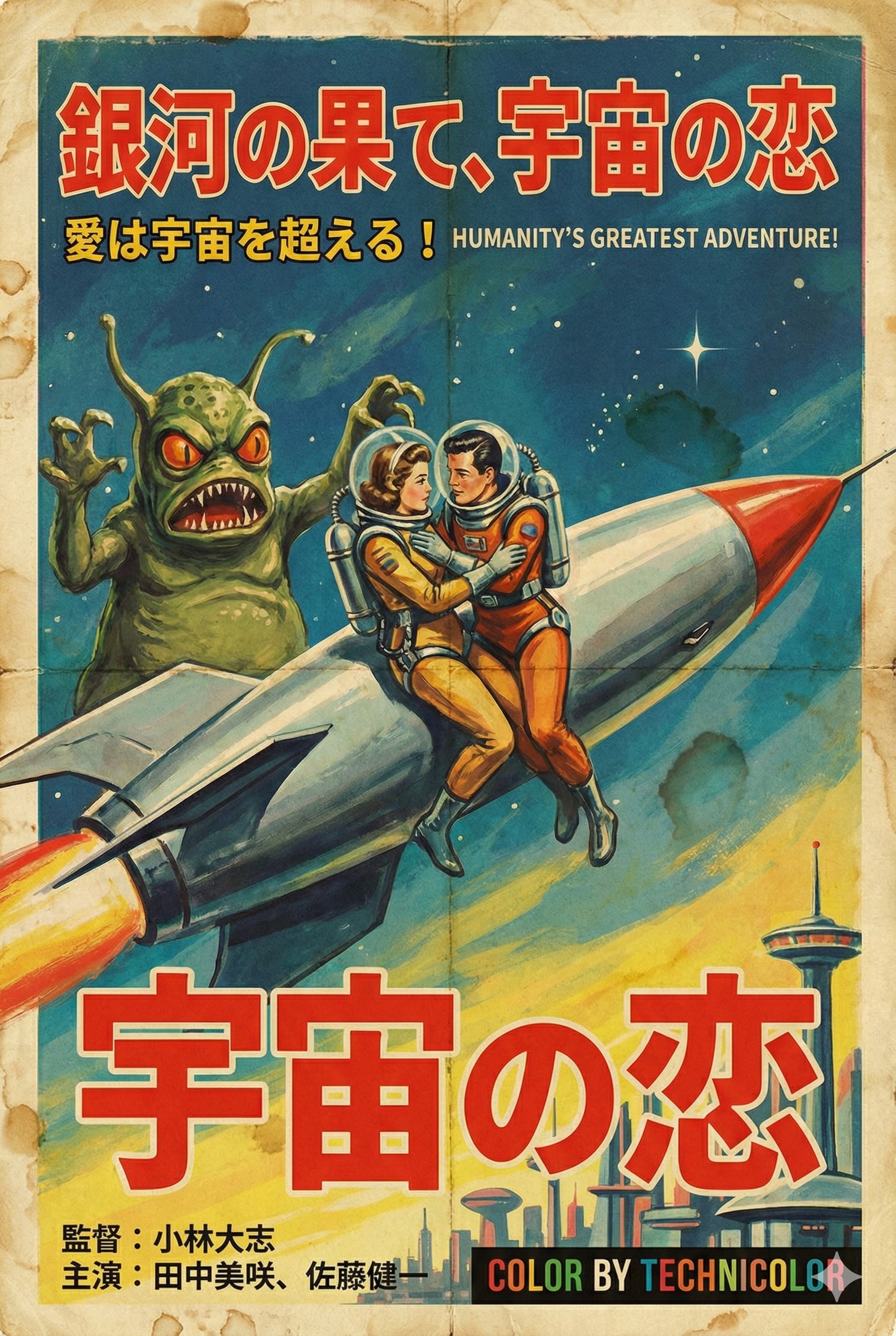 1950s High-Energy Rockabilly, Japanese 80s Rock’n’Roll, fast-paced 4/4 rhythm, driving walking bassline, slapback echo on vocals, gritty and raspy male vocals, masculine and rebellious tone, Gretsch-style twangy electric guitar solos, pounding boogie-woogie piano, vintage tube amp distortion, cinematic retro atmosphere, high voltage, energetic drums with heavy snare hit, Japanese lyrics, emotional and powerful delivery