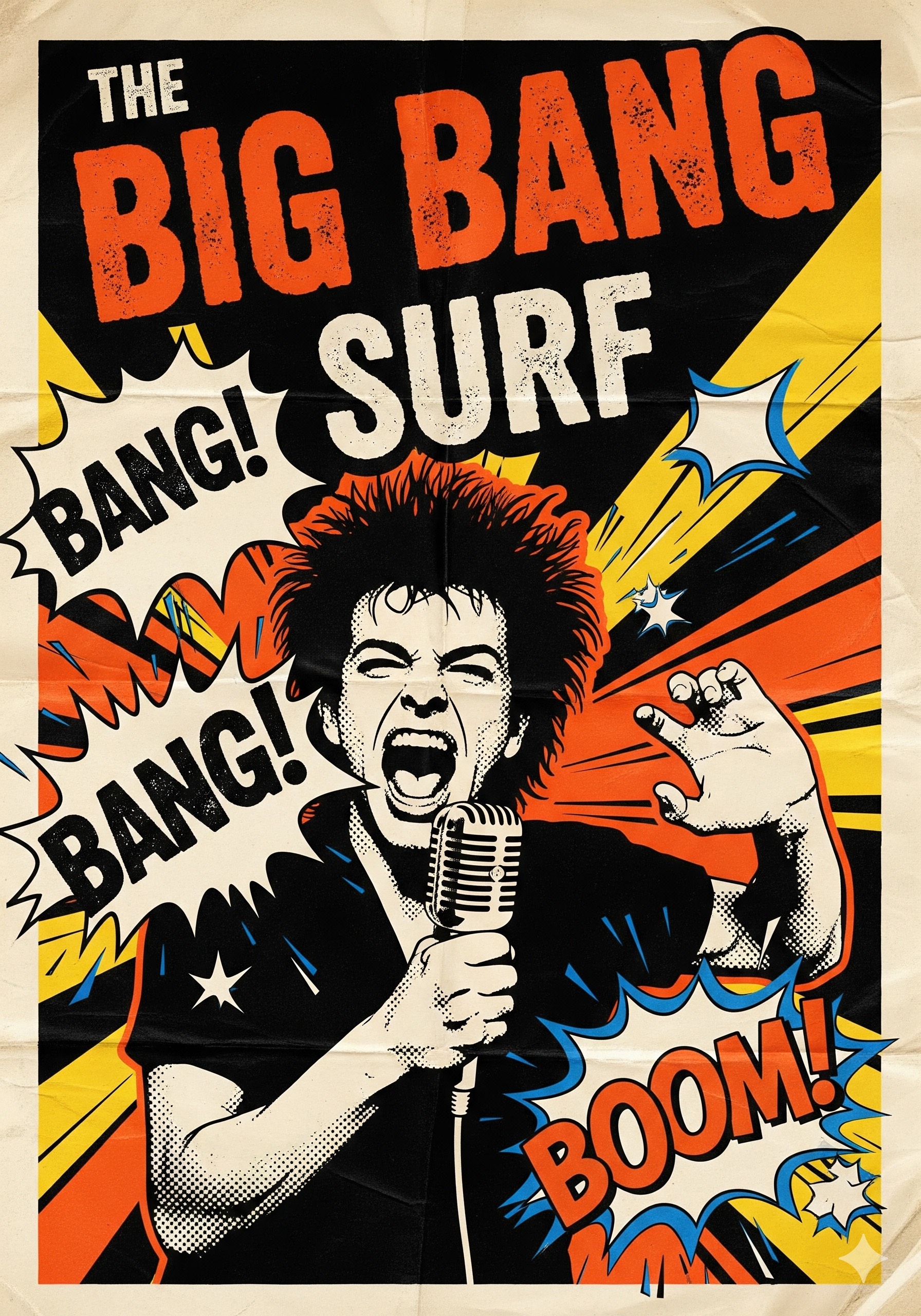 1960s surf rock, raw garage punk, manic energy, lo-fi vintage recording, heavy reverb guitar, fast tempo 170bpm, chaotic male vocals, stuttering vocal style, screaming vocals, nonsense scatting, novelty rock