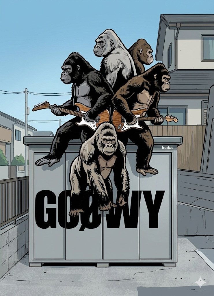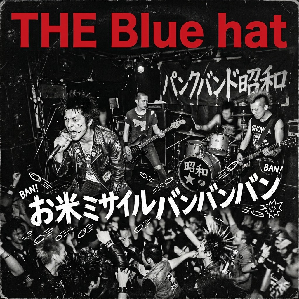 Japanese Punk Rock, Fast-paced, Energetic, Shouting Male Vocals, Gritty Guitar Riffs, High Energy, Raw Production, Comedic undertone, 1970s garage punk vibe, Aggressive Driving Drums, Theatrical performance, Hardcore Punk influence, Slapstick energy