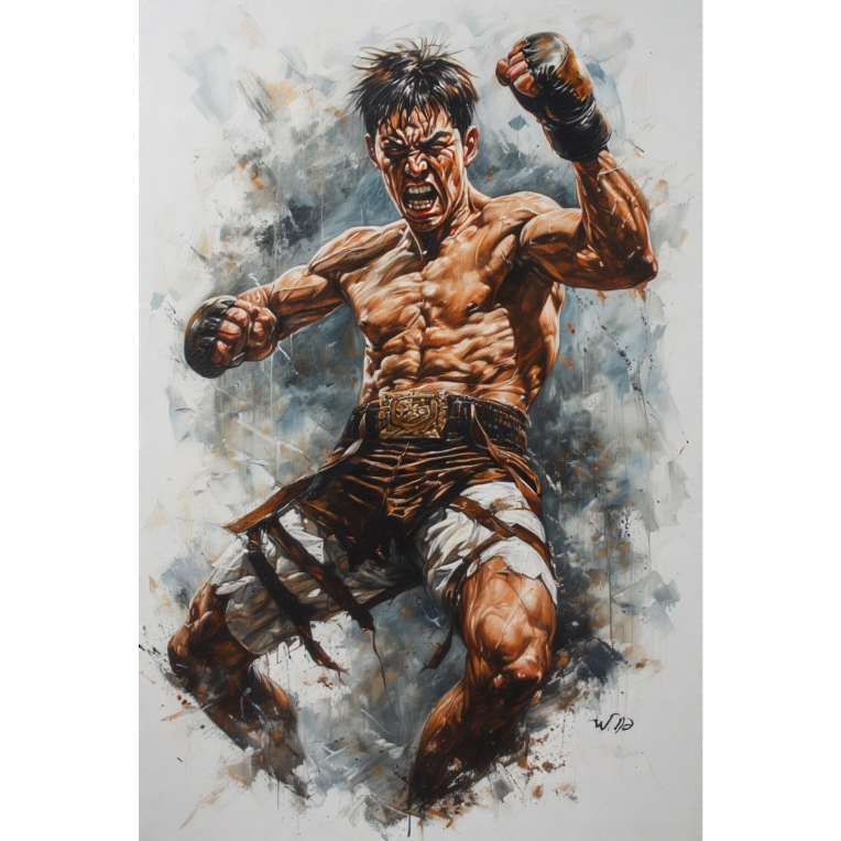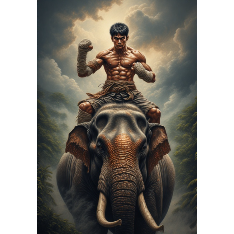 Create an oldschool East Coast hip-hop track inspired by the late 90s and early 2000s sound, The beat should be dark, raw, and memorable, with classic boom-bap drums, deep bass, and vinyl crackle, Blend in traditional Thai instruments like khene, ranat, and pi nai to give it a unique cultural texture, Rap flow should be gritty, confident, and storytelling, capturing the spirit of a martial artist on a mission, Keep the vibe streetwise, cinematic, and slightly mystical