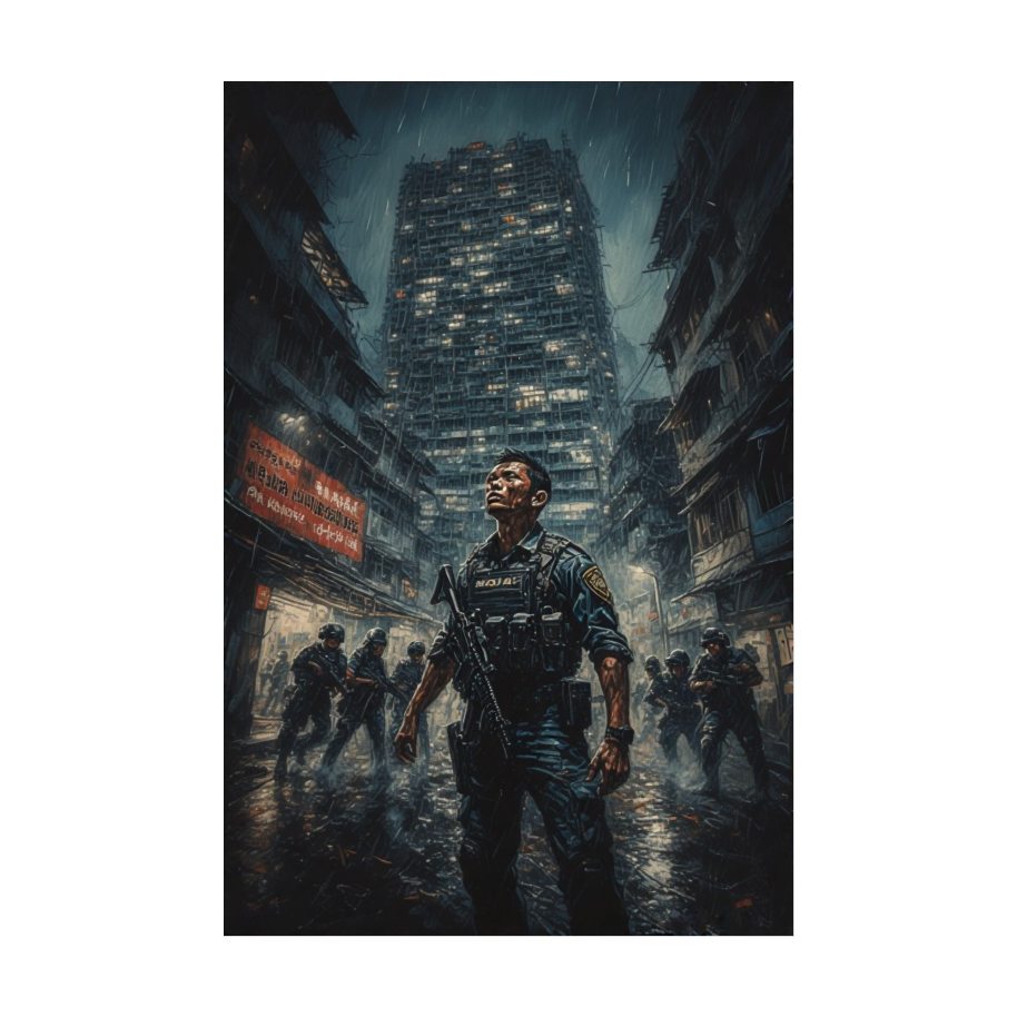 Create an oldschool East Coast hip-hop track inspired by the late 90s and early 2000s sound, Use a dark, claustrophobic, boom-bap beat with deep punchy bass, raw vinyl crackle, and gritty drums, Blend in traditional Indonesian instruments like gamelan, suling (bamboo flute), kendang (drum), bonang, and rebab to create a haunting and atmospheric vibe, The rap flow should sound urgent, aggressive, and cinematic, telling a story of fighting through a high-rise full of enemies, Keep the mood intense, dramatic, and streetwise, with moments of eerie calm before explosive bursts of energy
