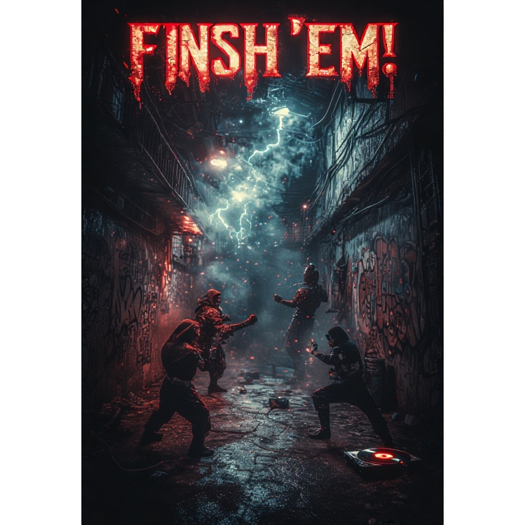 Create a gritty, underground old-school hip-hop beat inspired by the East Coast sound of the 1990s, Use raw boom bap drum patterns with punchy kicks, snappy snares, and dusty vinyl textures, Include subtle martial arts sound effects in the background — such as punches, kicks, sword clashes, swooshes, and battle shouts — to evoke a cinematic, fight-ready atmosphere, Layer classic DJ scratches throughout the beat, especially during transitions and hook sections, using vocal cuts like “Fatality”, “Fight!”, or other aggressive samples, The mood should be dark, intense, and rhythmic — like a rap battle in an underground dojo, Tempo: 90–94 BPM, This beat should feel raw, authentic, and perfect for a lyrical martial arts-themed track with powerful bars and vivid storytelling