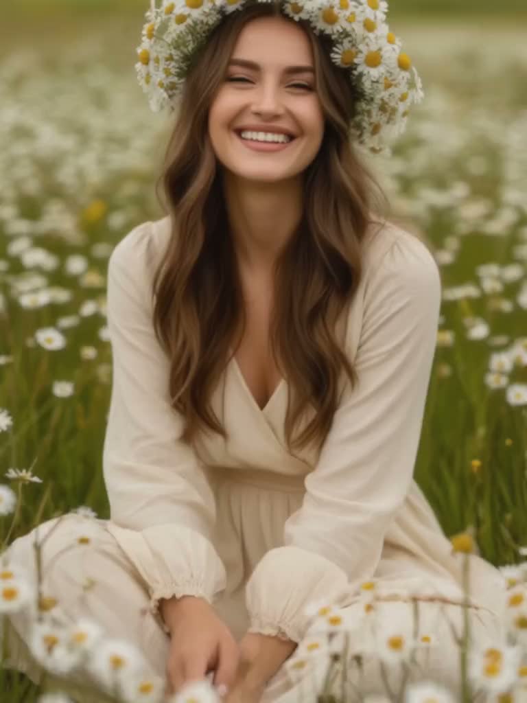 An ethno-acoustic ballad with warm acoustic guitar, soft cajón, gentle flute, and a subtle string ensemble in the background, The atmosphere is tender and bright, as if sung by the fire or in the mountains at sunset, The Female vocal is clear and heartfelt, carrying intimacy and sincerity, The music conveys harmony, freedom, and love, as if happiness lies just beyond the horizon