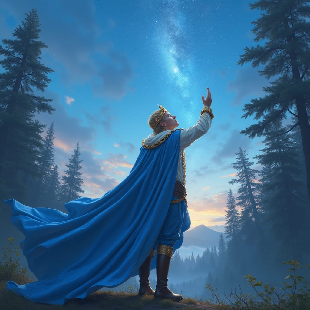 The star Love called a prince; the princess searched for him. Together, they found true happiness in a heavenly garden, becoming king and queen.