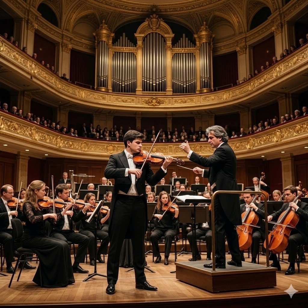 [Suno AI Style Instruction: Complex symphonic arrangement, Solo violin must be extremely virtuosic with rapid runs, double-stops, and soaring emotional melodies, Orchestral backing with rich harmonies, brass swells, and delicate woodwind counterpoint, 44100Hz fidelity, ]