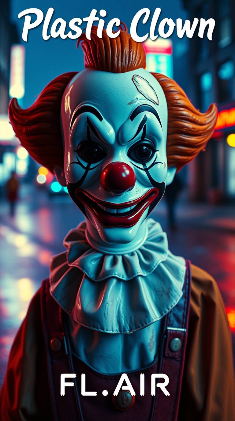 Male vocals with gritty 90s Britpop attitude, Mid-tempo rock anthem with jangly electric guitars, warm bass, dry snare, and big open choruses, Slightly lazy, confident delivery with emotional bite, Sound inspired by the 90s UK scene — think swagger, melancholy, and cigarette smoke in the rain, Add layered rhythm guitars, tambourine on the chorus, and crowd-style backing vocals shouting “plastic clown!”, Bridge should drop to a softer, reflective tone with mellotron pad, then explode into the final chorus, Slight tape saturation, analog warmth, natural reverb, Guitar feedback fade-out at the end, Mood: triumphant sadness, lost identity, bittersweet fame