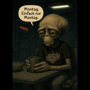 A tired but rhythmically tight sci-fi glitch-hop track with dry, deadpan male spoken vocals in German, The instrumental is built around a slow, dragging hip-hop groove (around 75–85 BPM), layered with subtle glitch effects: rhythmic stutters, digital cuts, pitch drift, and low-level voice glitches, Use lo-fi textures like dusty vinyl crackle, light tape hiss, and mechanical bleeps to suggest a broken morning routine aboard a spaceship, The harmony is minimal, with warm analog synth pads, slightly detuned keys, and bitcrushed chords that feel like corrupted startup sounds, The beat should feel heavy and dragging, like walking through molasses in zero-G – thick kick drum, lazy snare, syncopated hi-hats, Include glitchy vocal fragments and robotic interjections (e, g, "Systemfehler", "Motivation nicht gefunden", "Bitte warten") to enhance the theme of mental system lag, Occasional alien ambience or distant machine loops help establish the sci-fi environment without overpowering the mix