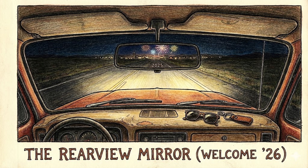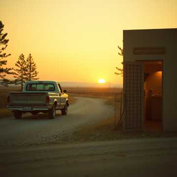 A modern, driving Country-Rock anthem with a "heartland" storytelling vibe, The track opens with warm, resonant acoustic guitar strumming and a subtle, steady kick drum that mimics the rhythm of tires on pavement, The vocals should be male, gritty, and conversational—sincere and grounded, avoiding heavy nasal twang, As the song progresses, it builds into a rich, full-band sound with a soaring, melodic electric guitar lead (think Eric Church or Luke Combs) that feels like open-highway driving, Atmospheric pedal steel guitar adds a layer of nostalgic "sunset" texture in the background without being mournful, The chorus is anthemic and uplifting, designed for singing along with the windows down, The production is polished but retains an organic, "live band" energy, balancing wistful nostalgia with a driving sense of purpose