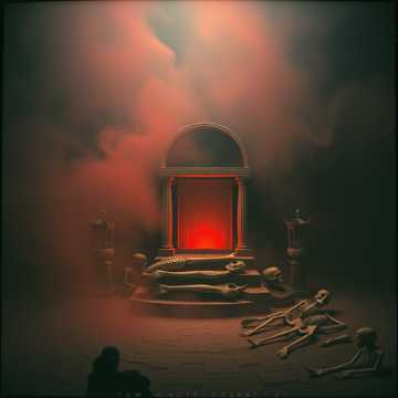 resonant bass, violins weave through the chaos, accompanied by a deep, metal, symphonic death metal, creating an eerie, instrumental, cinematic atmosphere, no vocals; the instruments tell the story, death metal, with heavy riffs and melodic electric guitar, double kick drums drive the rhythm