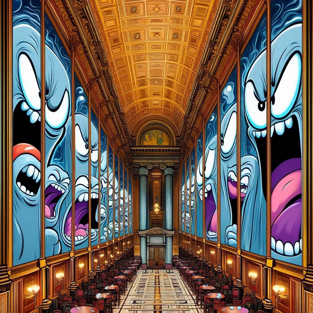 Vocals: manic theatrical male vocals alternating between whispering, melodic singing, yelling, sarcastic spoken lines