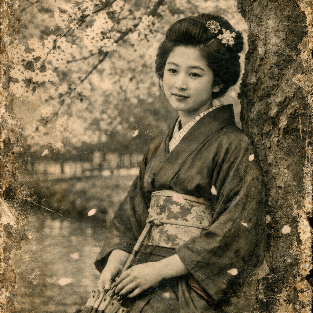 1920s Japanese, Taisho romance, pre-war Japanese popular song, female solo vocal, soft and graceful Japanese female singing, slightly old-fashioned diction, delicate vibrato, ‑modern pop, ‑powerful belting, ‑lush stereo, ‑hi-fi, ‑clean production, ‑cinematic, ‑EDM, ‑contemporary J-pop, ‑bright synths