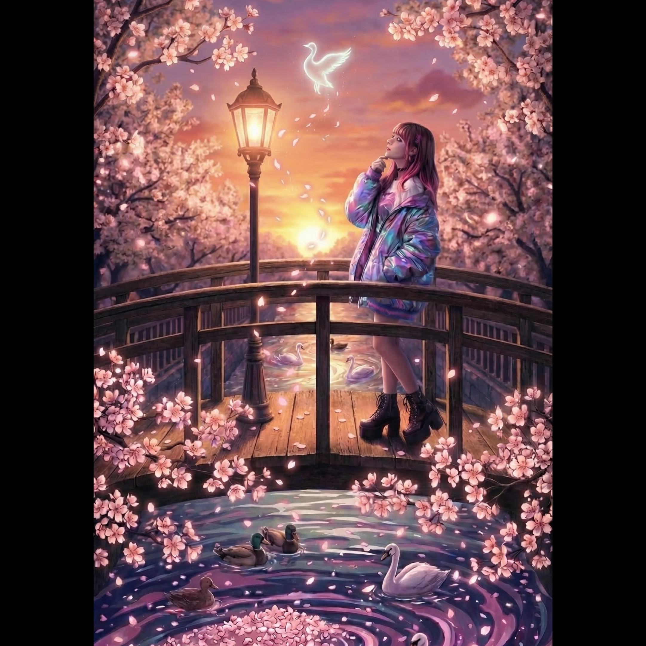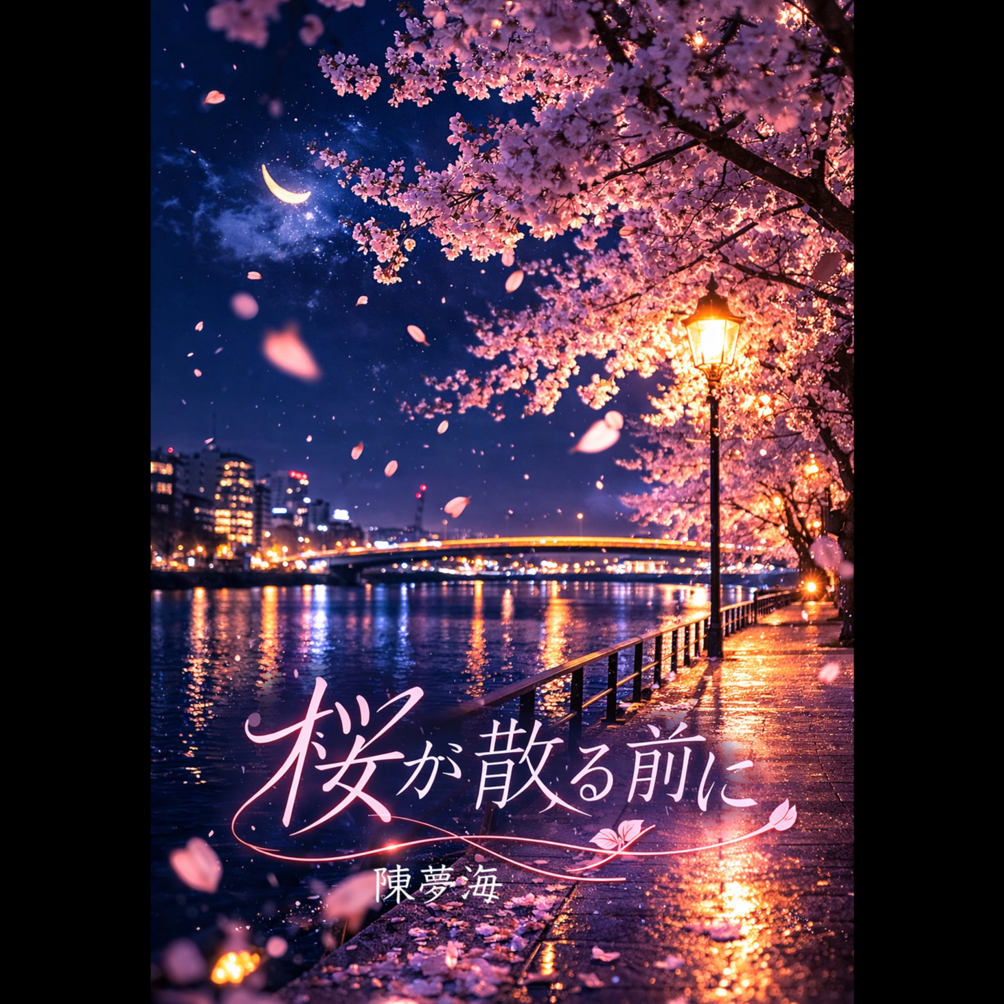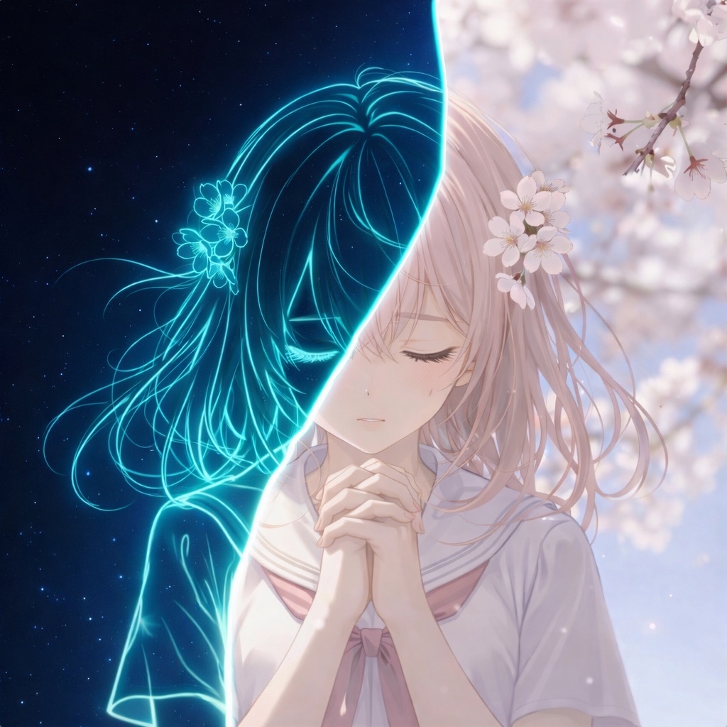 Emotional Japanese spring rock ballad with a nostalgic and slightly melancholic atmosphere, Male vocal with a clear, expressive and slightly airy tone, youthful yet emotional, capable of soft delicate verses and powerful dramatic choruses, Medium tempo (92–100 BPM), Intro begins with clean electric guitar with delay and gentle piano, creating a dreamy and cinematic atmosphere, The arrangement gradually builds with acoustic guitar layers, warm melodic bass and spacious rock drums, Verses feel intimate and atmospheric, focusing on melody and emotional storytelling, The chorus opens wide with uplifting rock energy, layered electric guitars, rich harmonies and strong drums while maintaining a sentimental and elegant feeling, Atmosphere romantic, cinematic and slightly mystical, like standing under falling cherry blossoms at dusk with petals drifting in the wind, Style modern Japanese melodic rock, dramatic, elegant and emotional with a strong sing-along chorus
