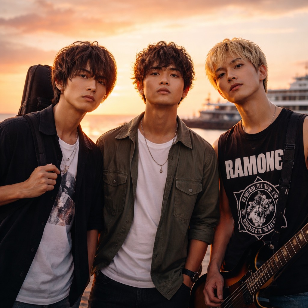 [Raw distorted guitar, tight bass, energetic drums, Male Japanese vocal, slightly rough and emotional, ]
