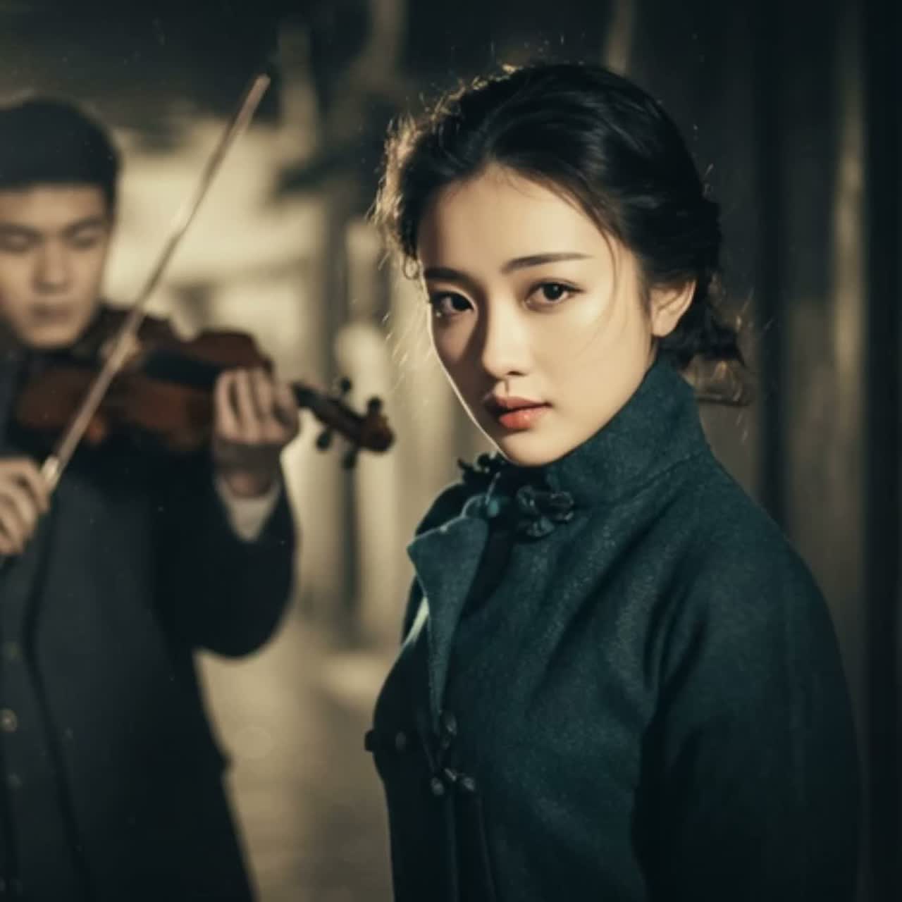 Solo violin melancholic ballad, vintage solo violin as the only instrument, intro accompaniment and interludes all played by solo violin, no accordion guitars piano orchestra strings drums or percussion, slow tempo minor key with subtle modal color, faint Silk Road atmosphere, sparse expressive bow phrasing with delicate ornaments and subtle micro slides, long sustained bowed tones, restrained movement with wide spaces between phrases, occasional low drone suggesting distant caravan footsteps, no strong rhythm only slow drifting motion, warm slightly aged violin tone, soft bow pressure natural vibrato, mid low register focus, dry intimate recording with light wide reverb suggesting open night air, intimate close mic female vocal, clear Hong Kong Cantonese pronunciation, Cantonese lyrics only, not Mandarin not Putonghua, slow expressive phrasing with lingering endings, one lyric line per phrase, clear pauses between lines
