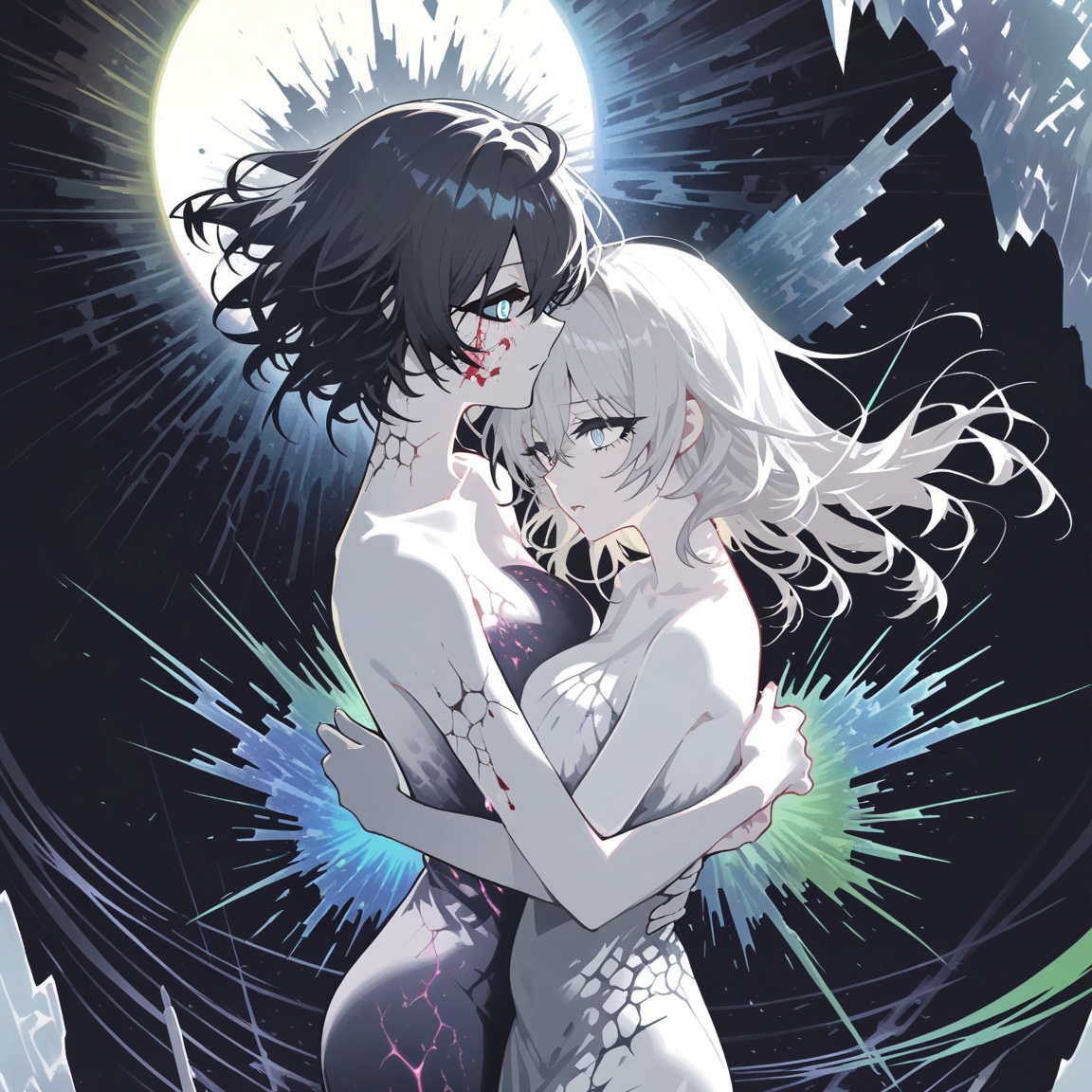 High-contrast Hyperpop, Dark J-Idol, 129BPM, Glitchy Industrial Trap, Cold Metallic Textures, Piercing Orchestral Hits, Emotional Piano Solos, Sudden Genre Shifts, Bipolar Dynamics, Sharp Autotuned Vocals, Haunting Gothic Choir Intro, Distorted Bass, Hi-fi Production, Winter-themed soundscapes