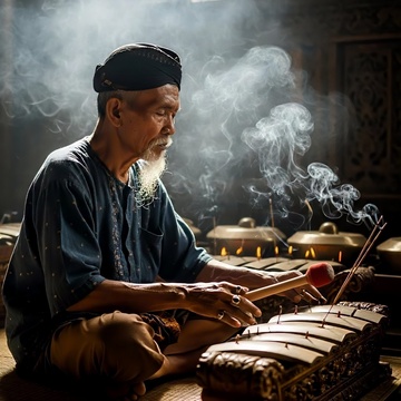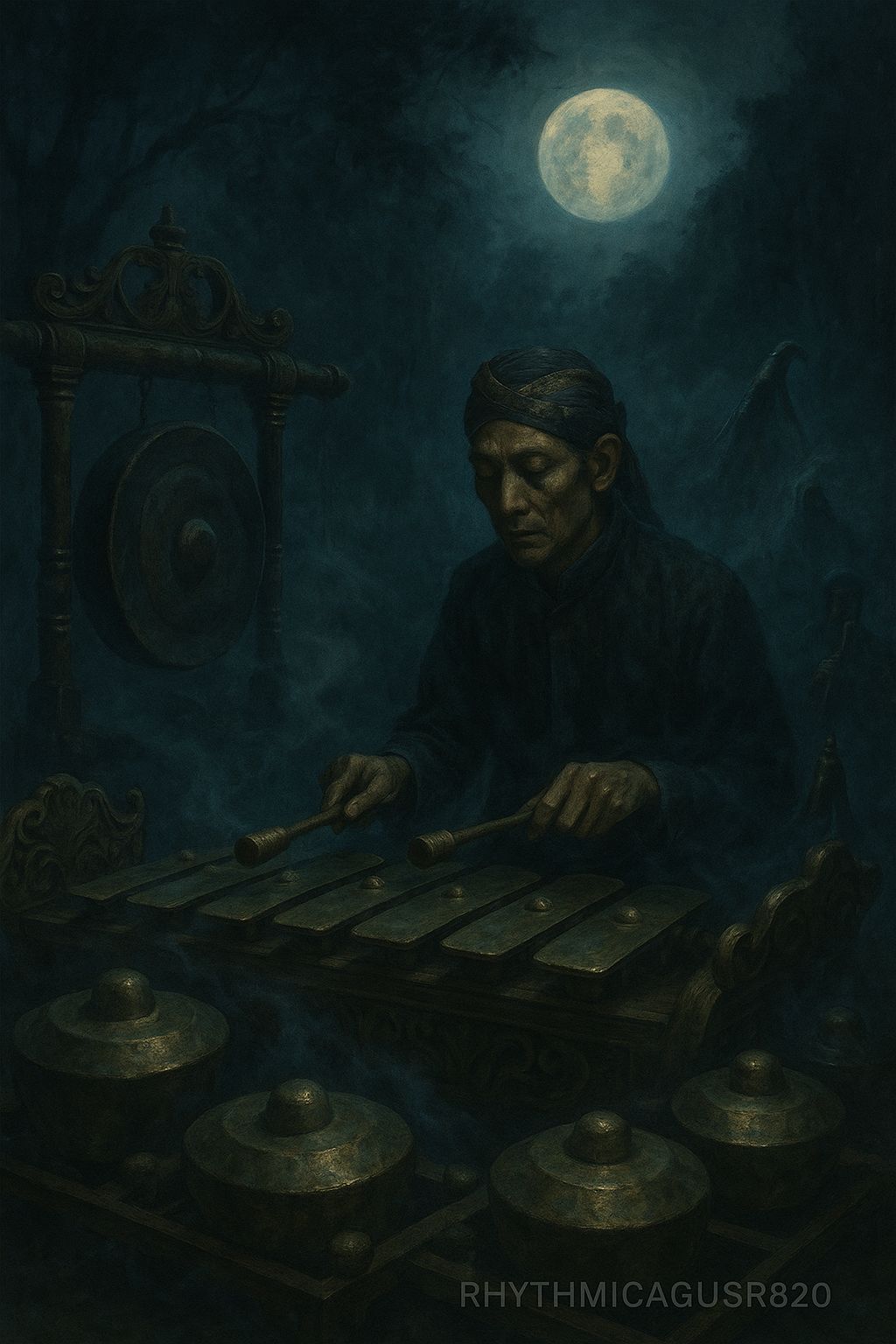 "vocal_type": "instrumental", "description": "A traditional Javanese gamelan ensemble featuring metallophones, gongs, kendang, and suling, The tempo is slow and steady, creating a hypnotic and mystical atmosphere, The soundscape emphasizes deep resonant gongs and shimmering metallophone tones, layered with soft suling (bamboo flute) phrases that evoke mystery and spirituality, The mood is haunting, ethereal, and ceremonial, like a sacred night ritual under the moonlight, "