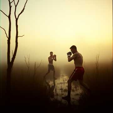Deep male vocal (Josh Turner range), Swamp-country groove, Dirty blues electric guitar riff with quick hammer-ons and percussive slides, Steady cowbell driving the rhythm like a boxer’s timing, Warm, swaggering bass line that punches in sync with the snare, Tempo: 100 BPM, Southern drawl vocal phrasing — tough, confident, weathered, Add light fiddle to echo the melody and subtle organ under the bridge for warmth, Mood: triumphant, gritty, proud — a fighter’s anthem for folks who take hits and stand tall again