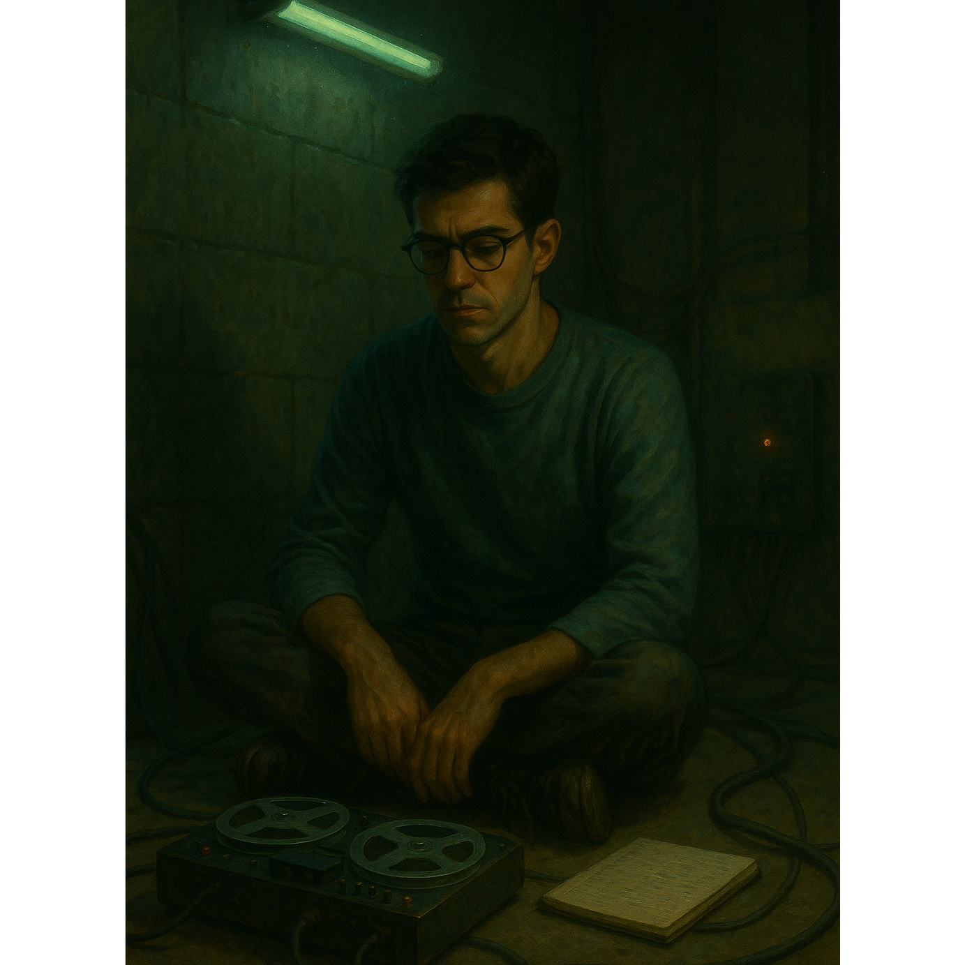 Analog bass groove with four-beat rhythm, evolving modular arpeggios, and layered pads representing archived voices, Subtle glitch percussion mimics data pulse through delay and phase motion, Two extended instrumental sections with ghostlike vocal textures rising through filtered reverb, Captures the feeling of the Building’s stored memories resurfacing through rhythm — connection through haunting, cohesive with The Building at Number 7 sound world