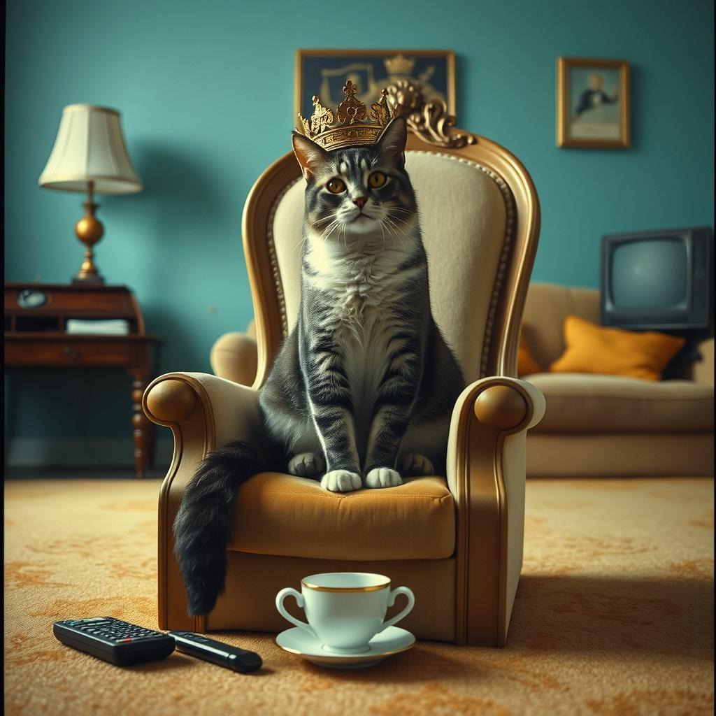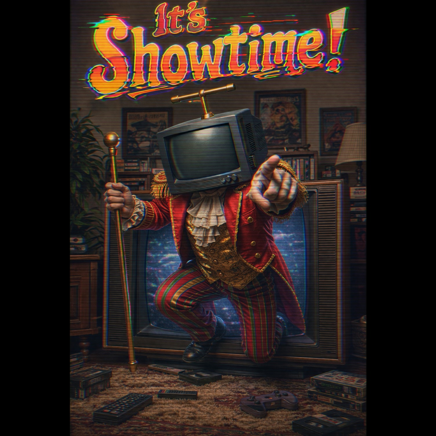 High-energy electro-swing track featuring a fast-paced, rhythmic male rap vocal with a theatrical, slightly nasal delivery, The instrumentation is centered around a syncopated, swinging drum beat with a prominent kick and crisp snare, layered with a walking bassline and bright, staccato brass stabs, A recurring, distorted synth lead provides a modern electronic edge, while occasional sound effects like record scratches and glitchy transitions add to the chaotic, television-themed atmosphere, The song structure follows a rapid-fire verse-chorus format with a high-tempo, driving energy throughout, The production is polished and dense, with heavy compression and a wide stereo field that emphasizes the interplay between the vintage swing elements and contemporary digital textures