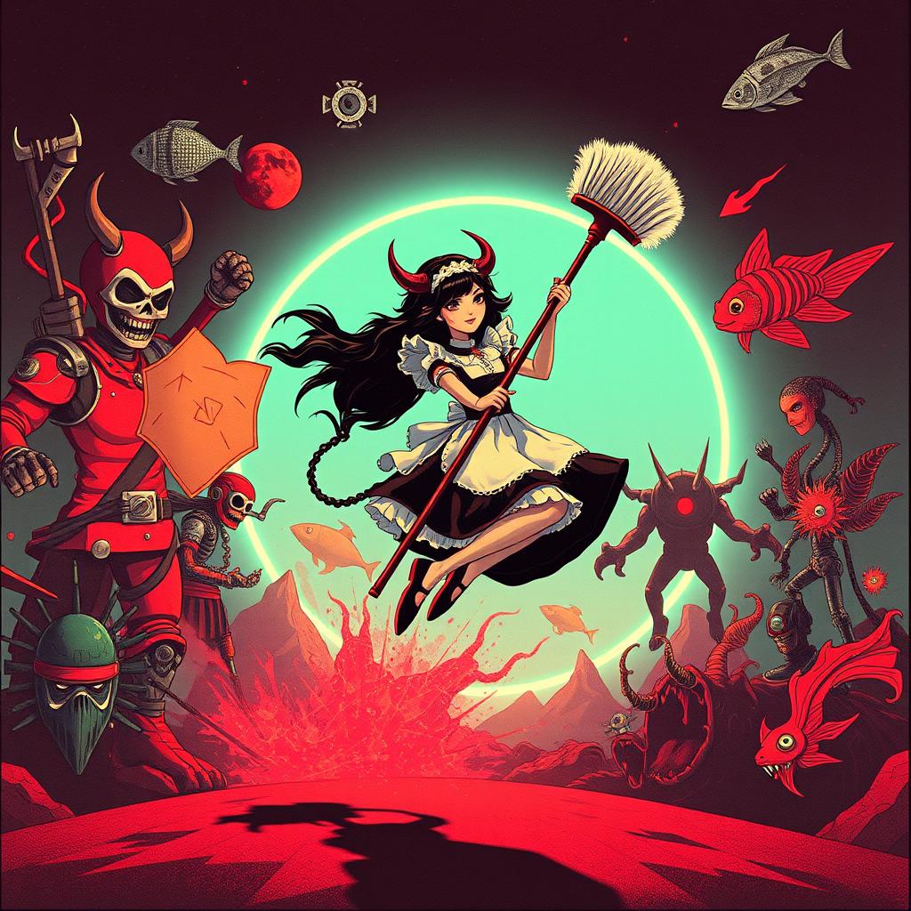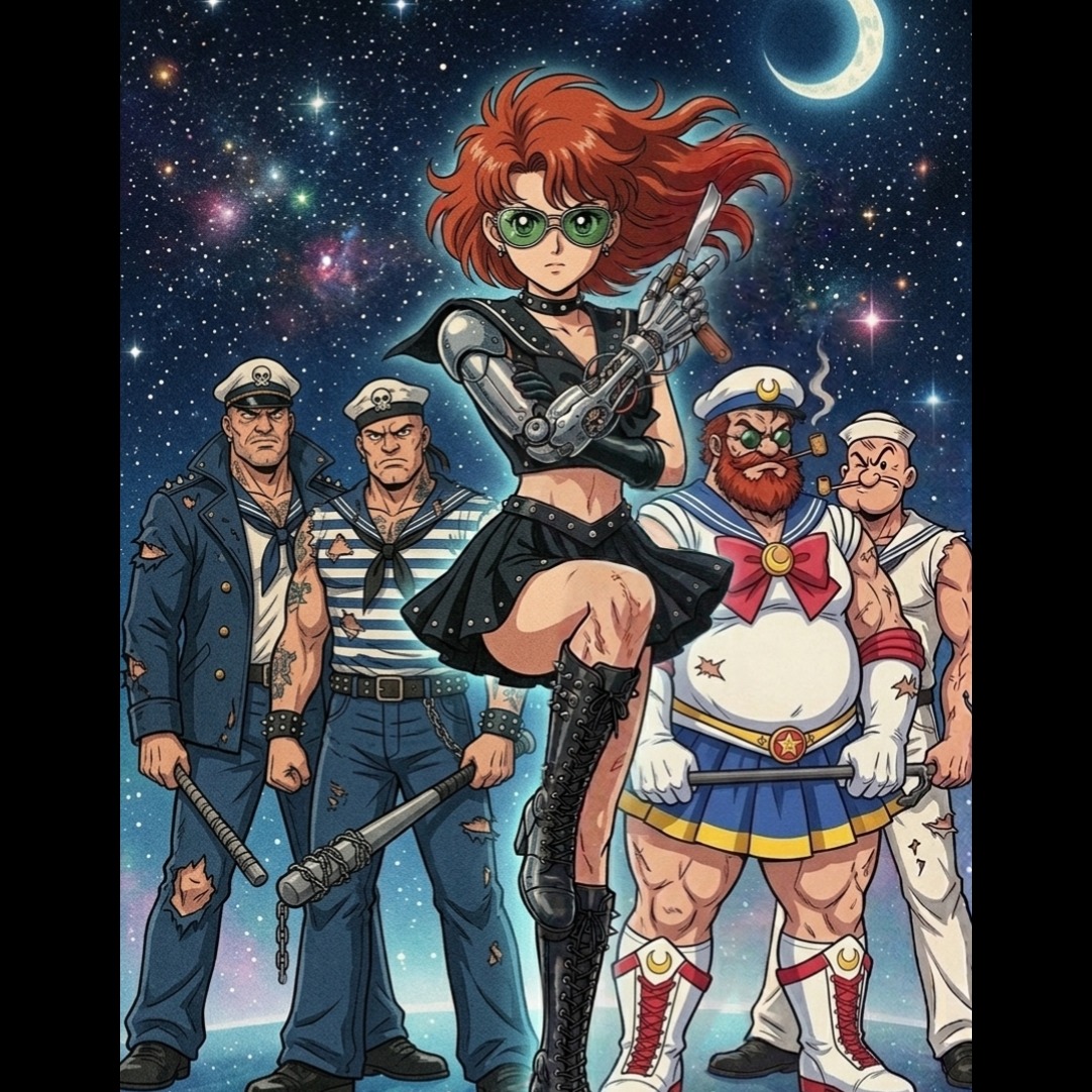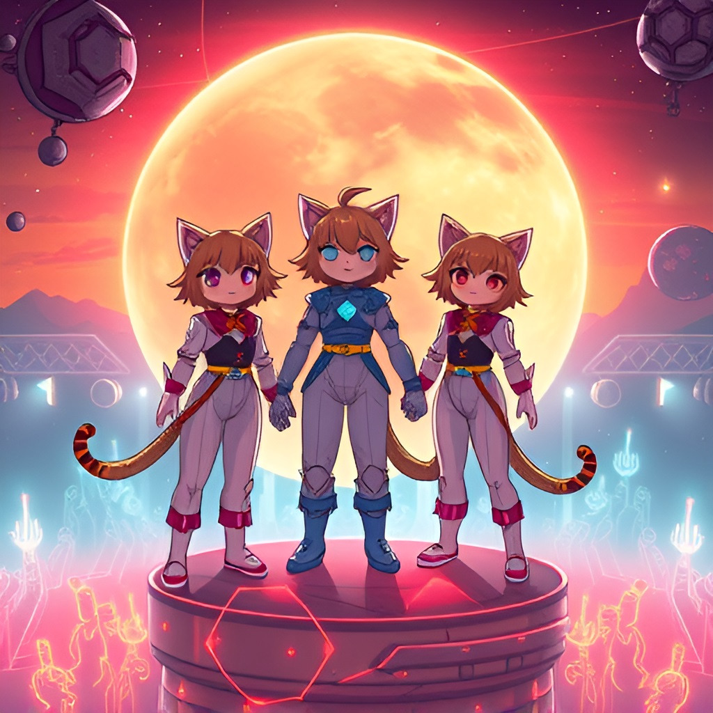 retro synthwave, techno, psy trap, electronic, cheerful, quirky, anime, science, female vocal