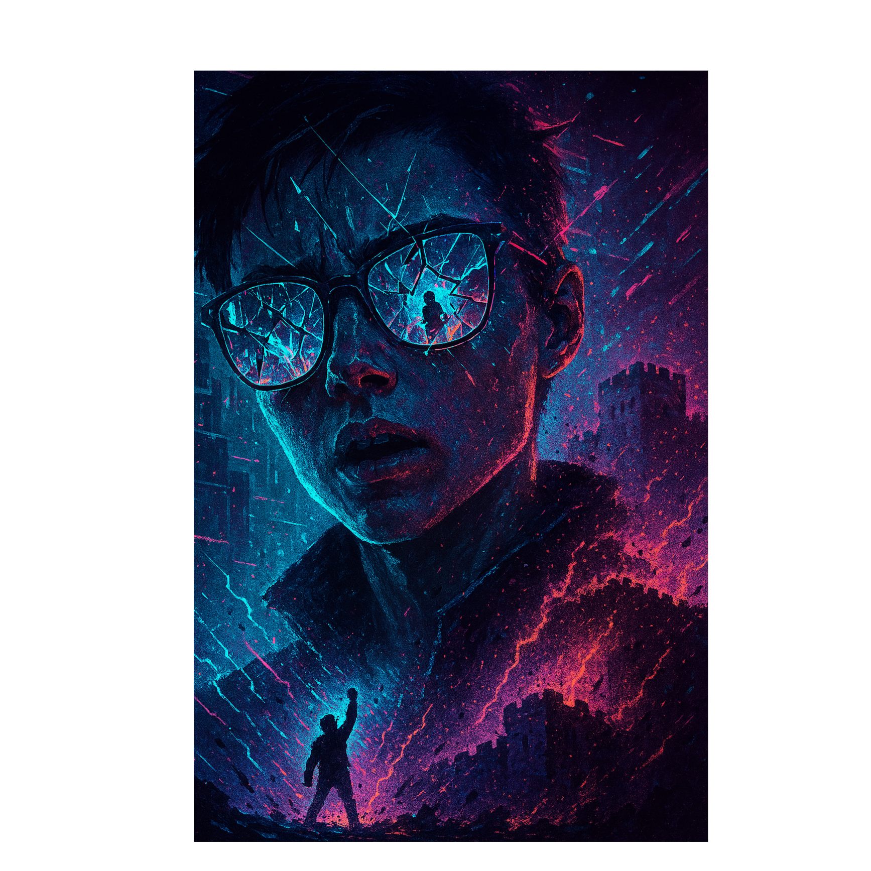 Explosive rap-rock/post-hardcore with glitch-pop edges: venom-to-vulnerability arc, mirror/identity imagery, and an anthemic, cathartic chorus, Verses are rapid-fire, tight-rhythmic; chorus soars and widens; bridge/breakdown crushes with a tempo feel shift, Aim 160 BPM in E minor; drop-tuned guitars, 808 subs, trap hats, glitchy arps, Vocals: aggressive rap in verses, layered melodic hooks in chorus, screamed ad-libs in breakdown; add call-and-response “glitch vox, ” FX: bitcrush, tape-stop throws, radio-voice filters, stutter edits, Mix: sidechain synths to kick, parallel distortion on bass/vocals, mono-focus verses → stereo-bloom chorus, automate saturation on drops, Structure: Intro → V1 → Pre → Chorus → Post → V2 → Pre → Chorus → Drop → Bridge → Breakdown → Chorus → Final, In Suno, specify genre tags, tempo/key, section labels, and include cues like “[Glitch vox: Am I real?]”