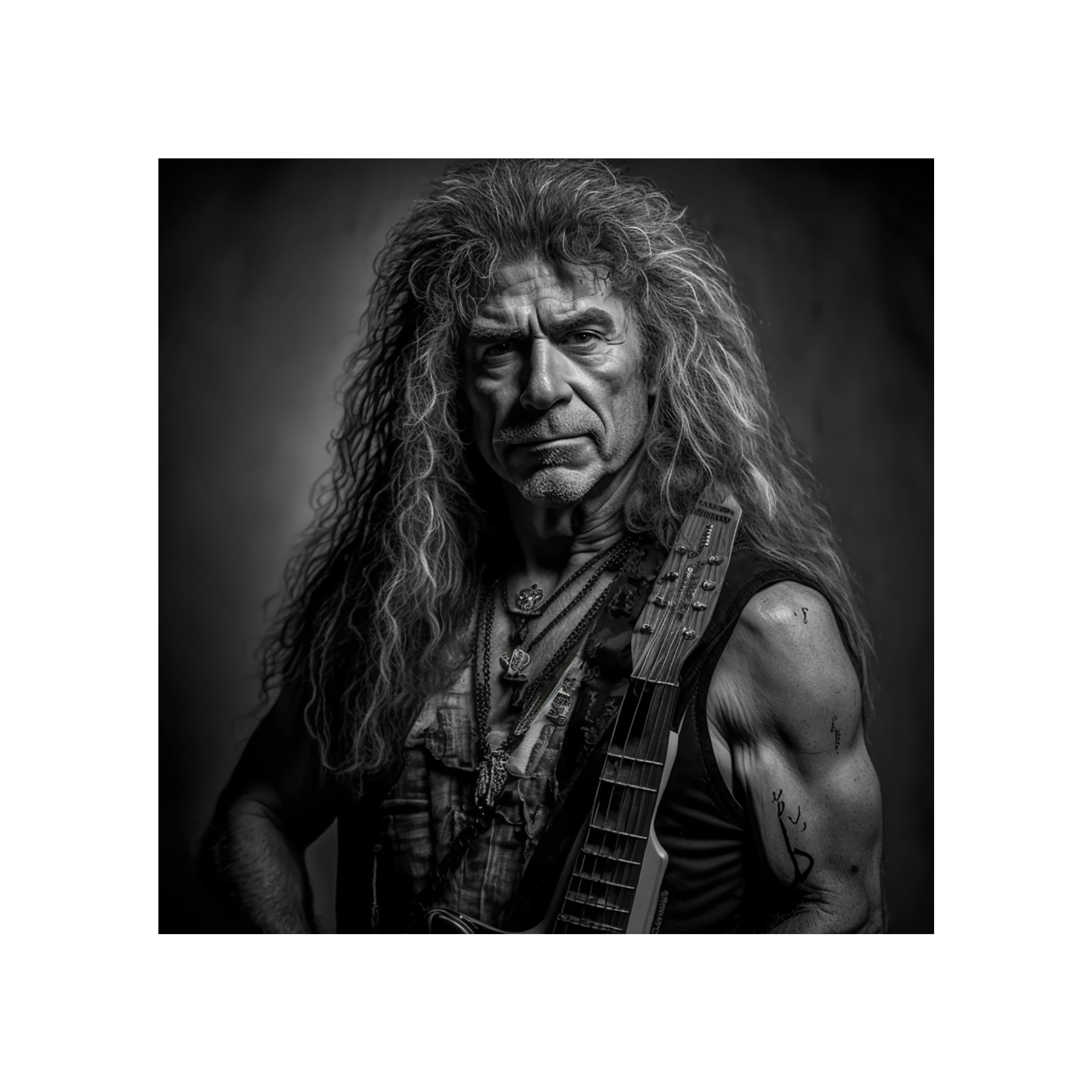 Heavy metal, chunky rhythm guitars with heavy distortion, speedy lead guitar solos, screaming vocals, booming drums and bass, background has organ played rapidly, One harmonica solo