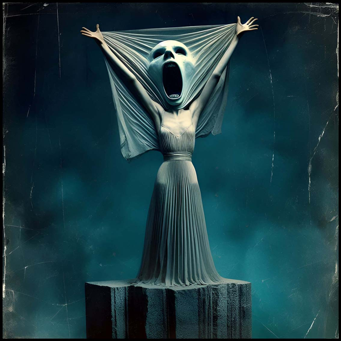 Soprano opera singer, accompanied only by timpani drums, a single violin, and a harp played sparingly