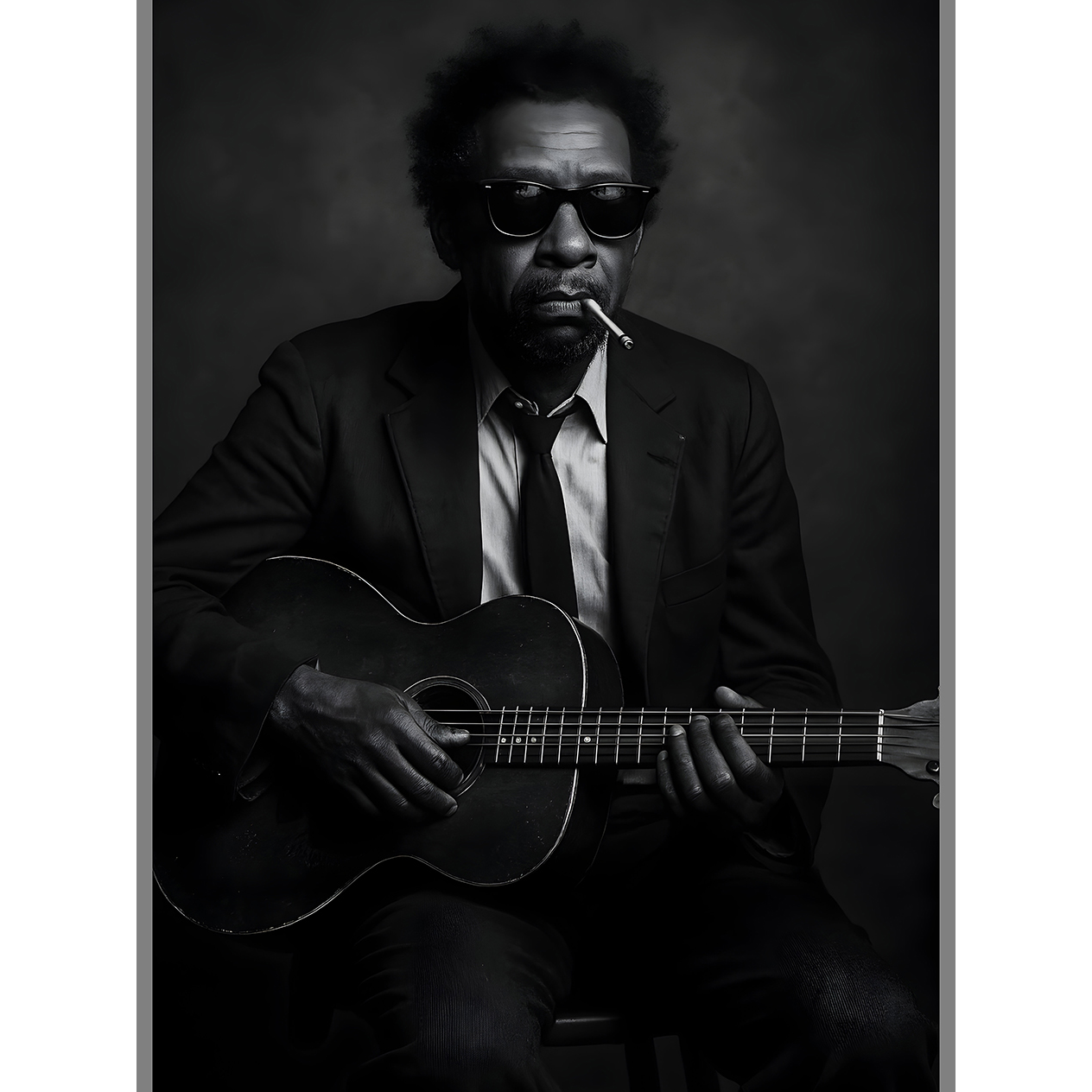 1920's blues, sung by elder Black man, Gospel flavor especially in the chorus, Instruments-- guitar, slide guitar, harmonica, spare and sparse piano, NO DRUMS or other instruments