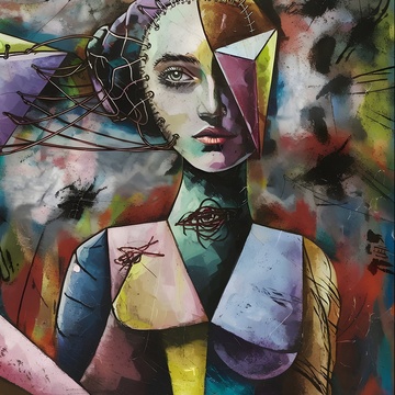 Industrial drumbeat, piano in minor keys, dissonant trumpet, atmospheric, fierce, mysterious, mystical