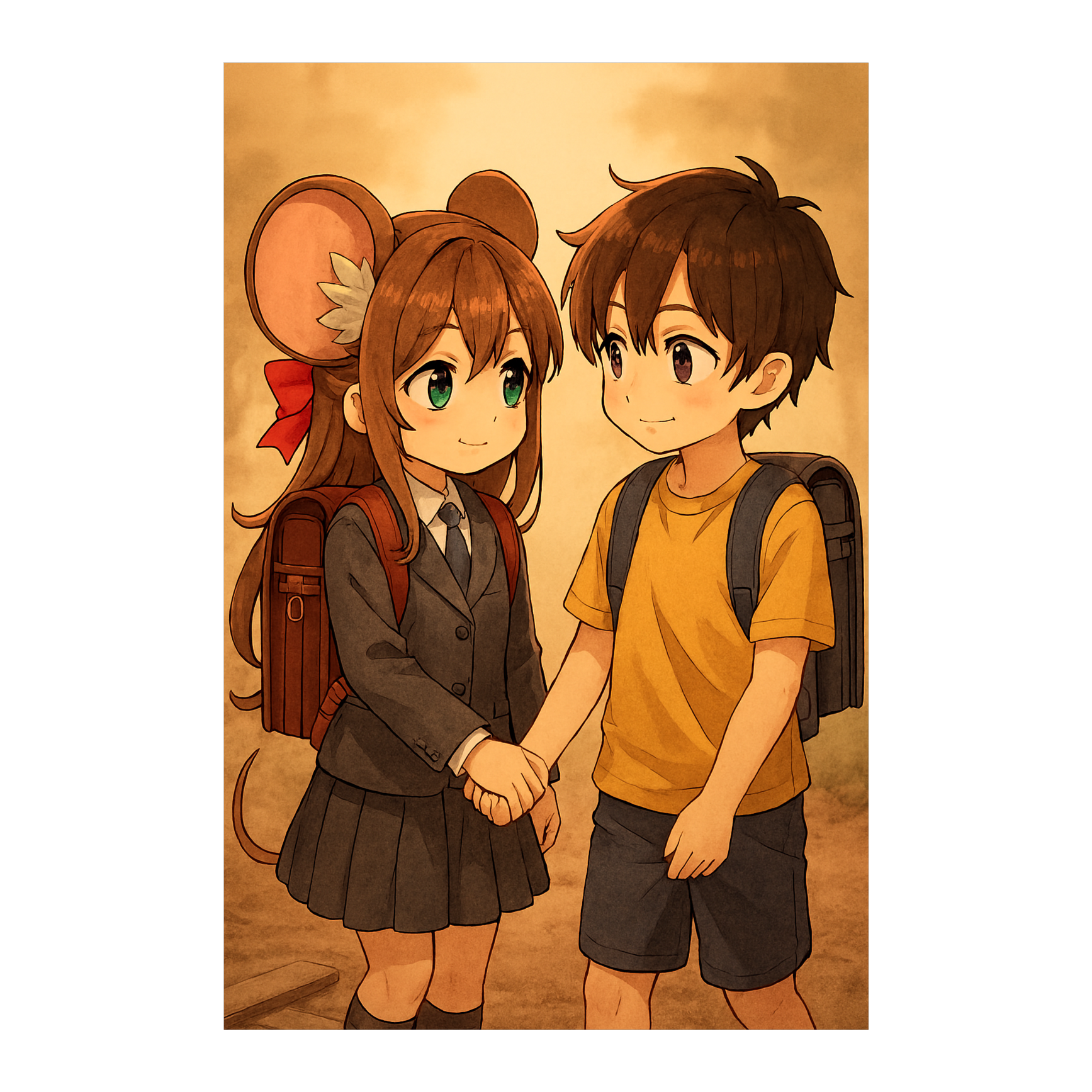The song expresses the journey from childhood friendship to eternal love — “Kotoba ja tarinai” (Words can’t reach), Japanese female vocal, pop-rock ballad, piano, acoustic guitar, emotional chorus, cinematic, heartfelt, nostalgic, tender, hopeful, love story, dynamic energy, warm tone, cinematic J-pop