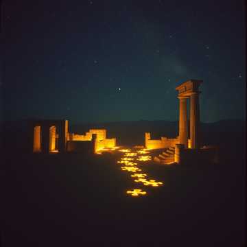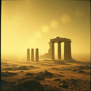 Epic cinematic J-pop with a mysterious and dramatic tone, blending symphonic orchestration with electronic beats, Dark strings, deep piano, and choirs create an ancient and sacred feeling, while driving synths and percussion give modern urgency, Verses flow steadily to keep the pace, avoiding heaviness, then expand into powerful choruses with soaring vocals, Bridge intensifies with layered echoes and emotional build-up, leading into a majestic Grand Chorus, Use reverb and atmospheric effects to evoke ruins buried in mud and hidden truths, End with a Cold End, leaving mystery and awe