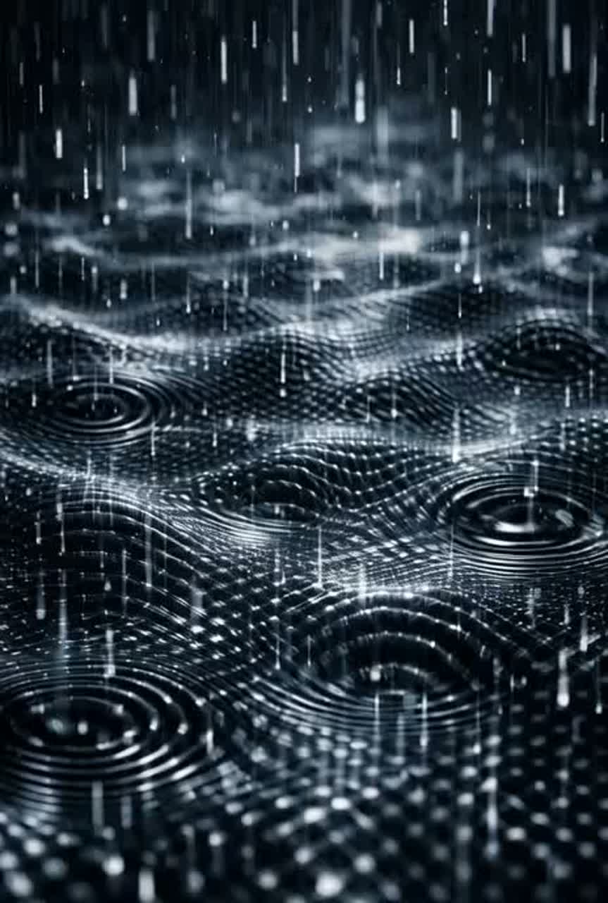 • Mid: layered rainfall forming a breathing grid