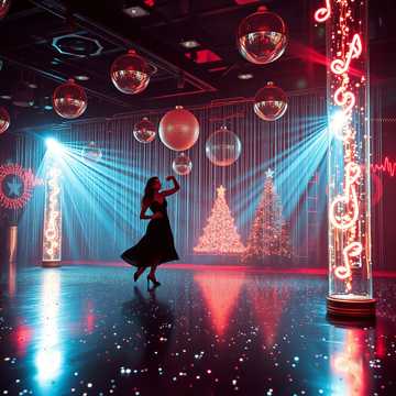 Create remixes of 1980s-style American Christmas dance songs, Blend festive melodies with shimmering synths, punchy drum machines, and nostalgic grooves, Capture the era’s neon-lit energy—think snow falling on disco balls, holiday cheer pulsing through retro beats, Keep it joyful, catchy, and perfect for a holiday dance floor under twinkling lights