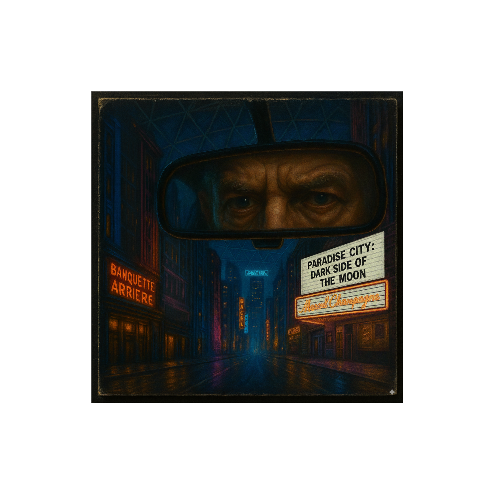 Music Prompt: "Post-punk band with driving bass, angular guitars, steady metronomic drums, Western tonal harmonies creating tension with the vocals, Overall mood: persistent anxiety, urban decay, melancholic futurism, "