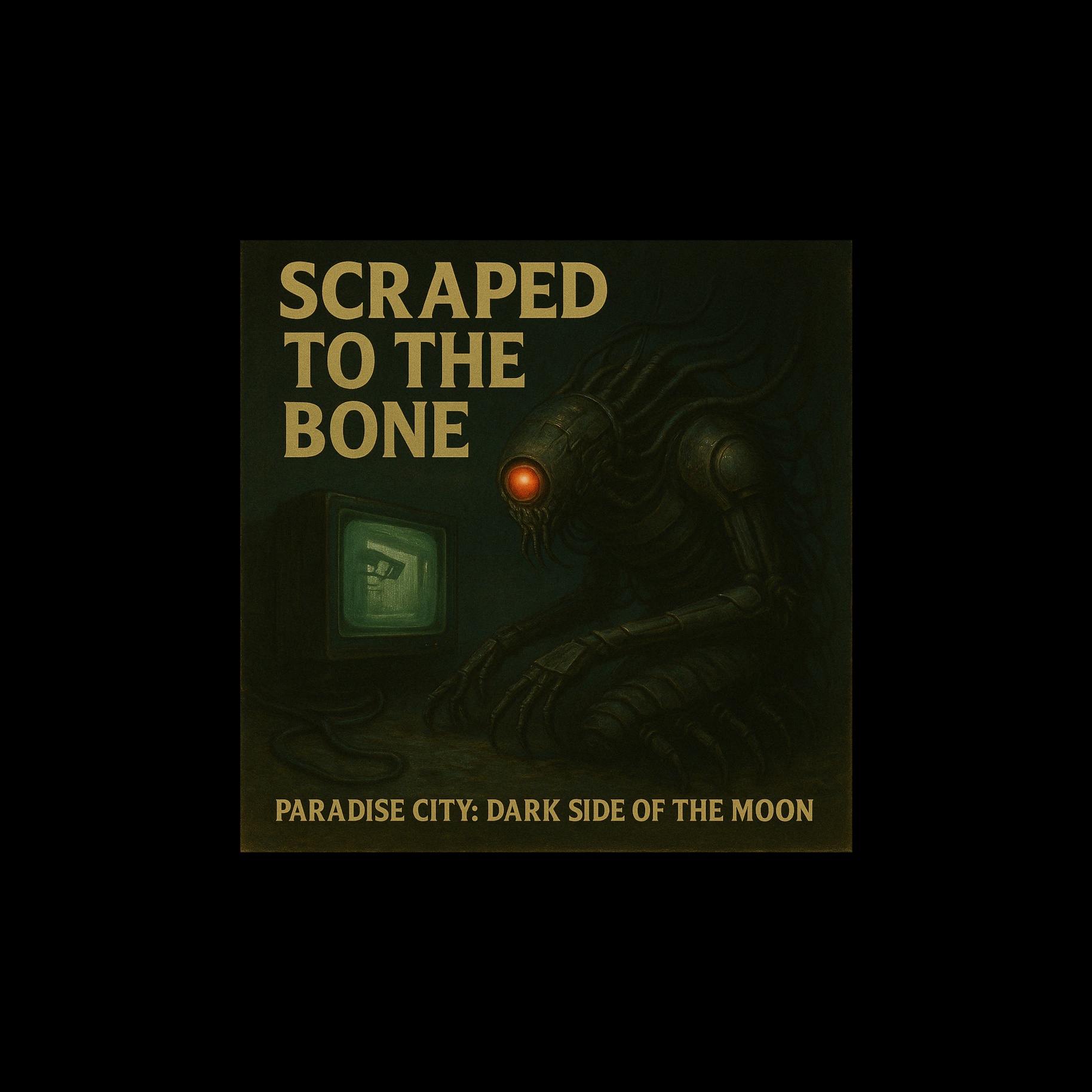 Shock Rock, glitch-core, tonality neutral screamed heavy distorted robot voice, minor key with chromatic elements, pressing, wanting, hostile