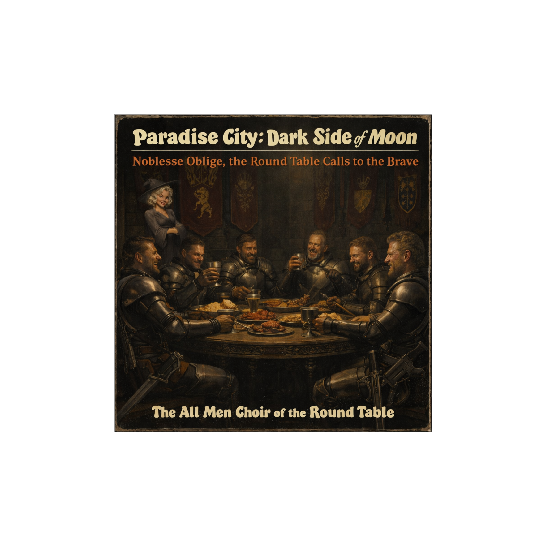 Joyous Drinking banquet Choral of braves, a call and response type of song, with martial elements, It's a choral of drinking knights similar to the old French song Chevaliers de la table ronde, Live in a banquet hall, Brass section, trumpets, French horns, and clarions, Minimalist orchestration only accents, focuses on the choral, avoid wordless vocalizations, Well pronounced, ‑pop, ‑solo, ‑synth, ‑polka, ‑baroque pop, ‑cut words