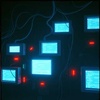Industrial rock with electro, male voice robotic distortions and heavy reverb, minor key