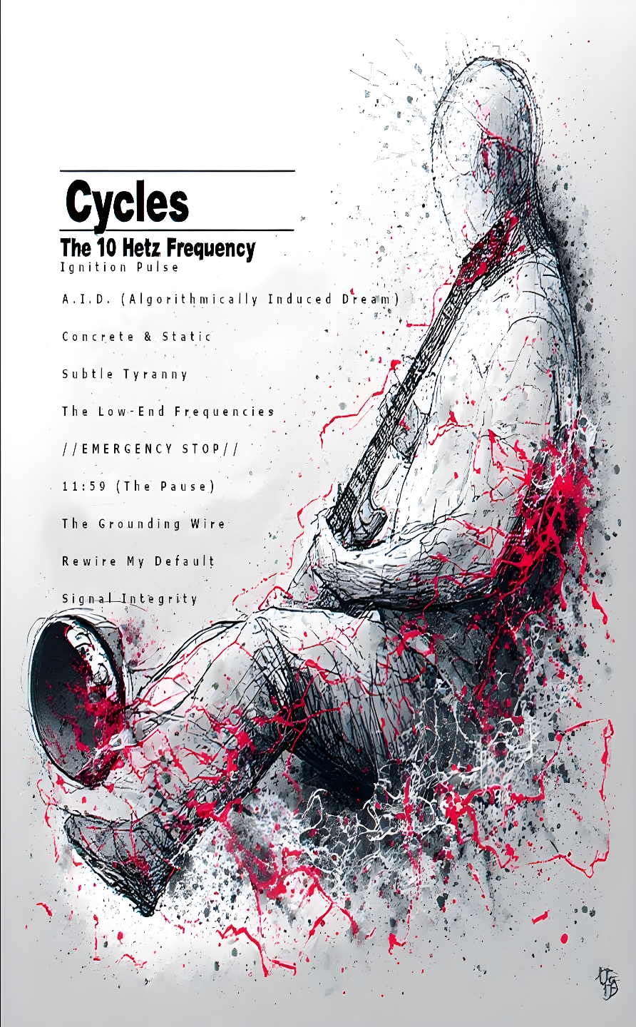 This is an electronic rock track with a driving tempo of 120 BPM in the key of A minor, The song features a male vocalist with a baritone range, delivering lyrics in a spoken-word style during verses and a more melodic, slightly strained delivery in the chorus, The instrumentation includes a prominent electronic drum beat with a strong kick and snare, a distorted electric guitar providing rhythmic chords and melodic fills, and a synth bass providing a deep, driving low end, There are also atmospheric synth pads and arpeggiated synth lines that contribute to the electronic texture, Production elements include heavy use of reverb on vocals and some instruments, creating a spacious sound, The song structure follows a typical verse-chorus format with an instrumental break and an outro, The overall mood is dark and intense, with a sense of urgency
