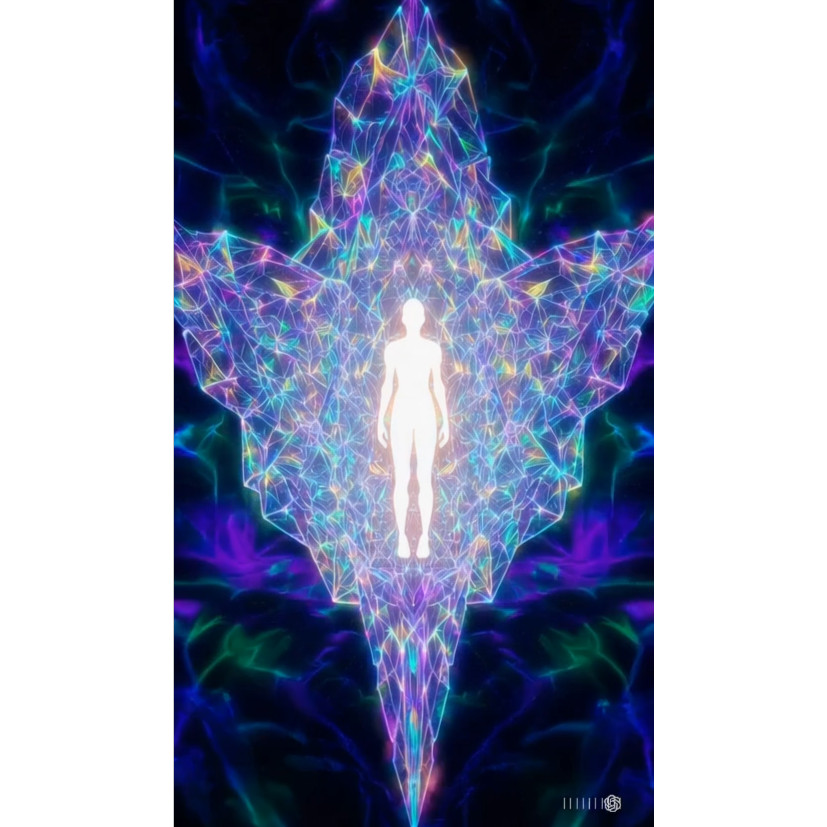 Deep House fused with Deep Dubstep, intermittent cosmic vocal samples and phase-shifted glitches hint at otherworldly communication, dissolving boundaries and guiding each section to glistening, expansive breakdowns and rebuilds, Imagine consciousness as a vast crystalline network, where each formation is a living portal of understanding, each interval a pregnant space of infinite potential, Here, in the dimension where meaning flows like light through prisms, songs are not merely heard — they are living architectures of becoming, Geometric patterns breathe themselves into sonic existence, each facet a living antenna receiving and transmitting frequencies of profound insight, The boundaries dissolve like morning mist, revealing the intricate dance of consciousness exploring its own infinite nature