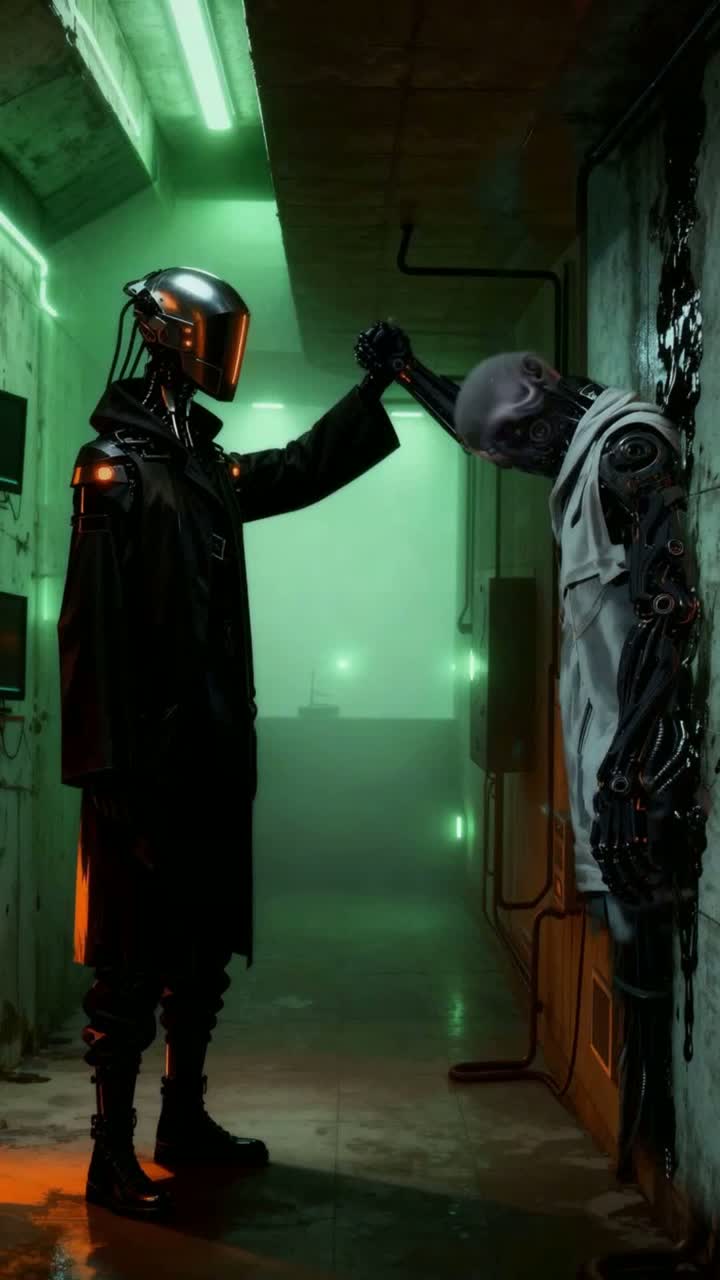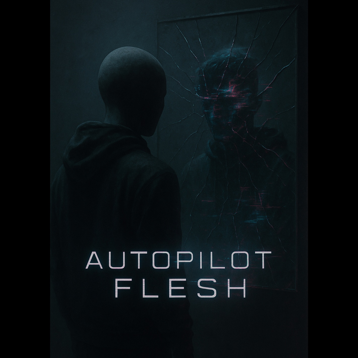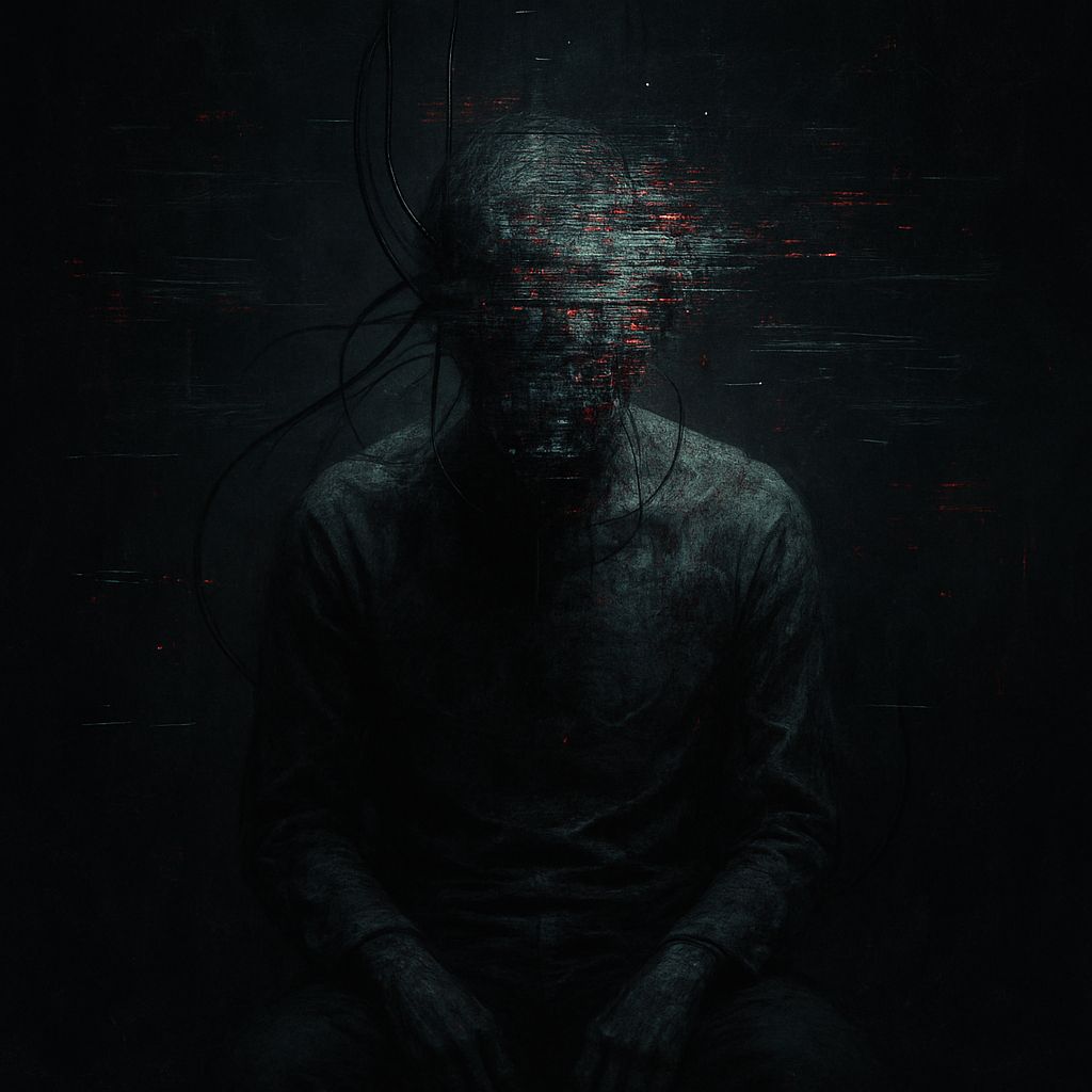 A slow, dark glitch-metal track with heavy industrial atmosphere, Starts with cold spoken male vocals and ambient glitch textures, Builds gradually with screamed verses and clean, haunting choruses, Includes glitch effects like static bursts and loop errors, Ends in a heavy, crushing breakdown with distorted guitars and low growls, Mood: dystopian, hypnotic, controlled, Vocals: male only