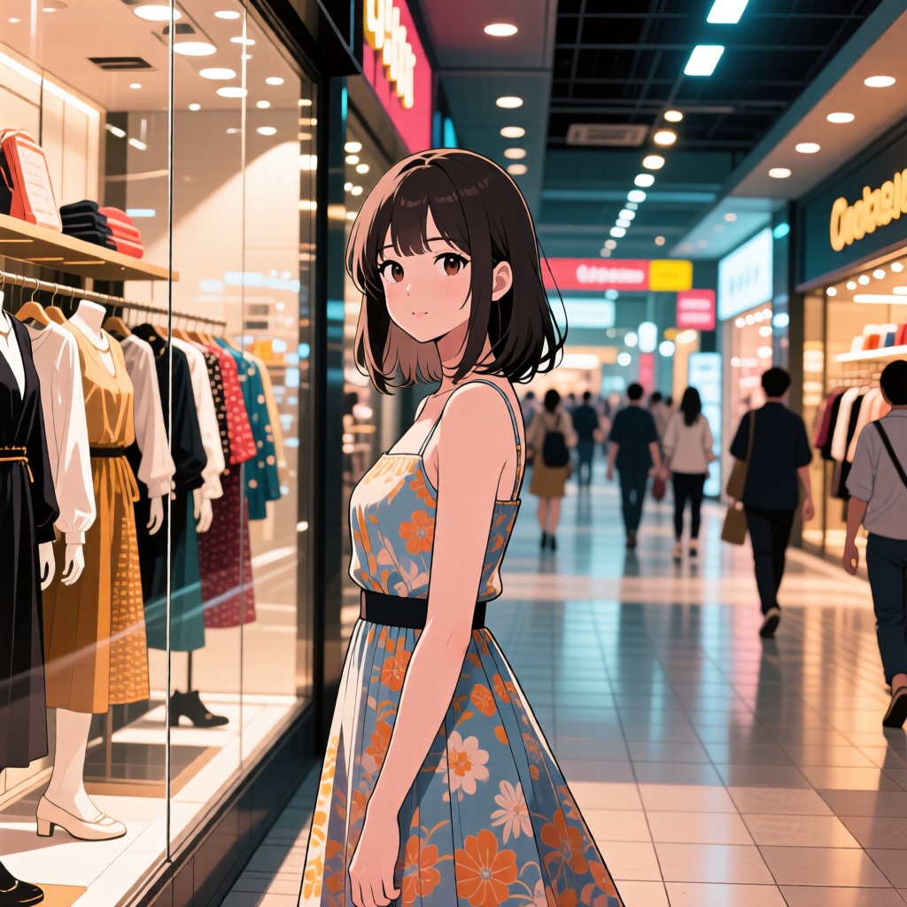Culture/Era: "showa era retro-futurism, 80s television music show vibe, modern tokyo pop, nostalgic shopping mall atmosphere, "