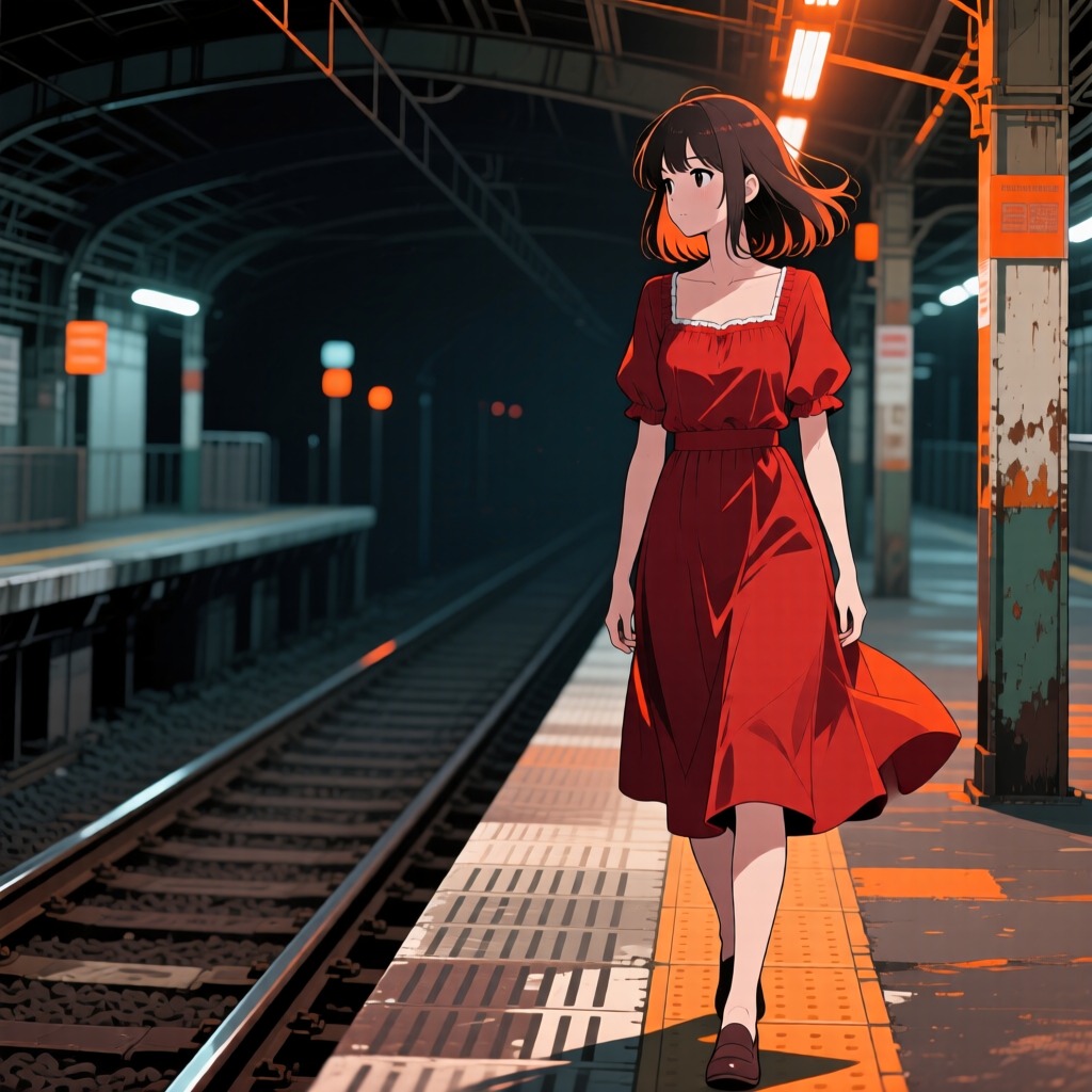 Emotion/Mood: "slightly dark, mysterious, melancholic yet energetic, dramatic, nighttime city vibe, "