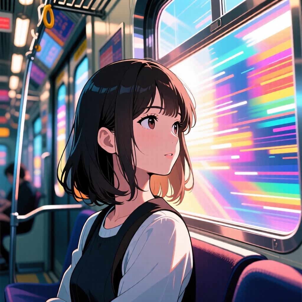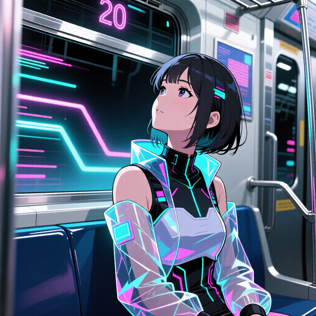 A driving City Pop anthem fused with Retro-Futuristic Synthwave, The track opens with a rhythmic, mechanical bassline mimicking the motion of a subway train, instantly overlaid by a glimmering synth motif that drifts like a memory of stars, The chord progression balances urban melancholy with cosmic wonder, utilizing jazzy minor 7ths that bloom into uplifting major refrains, The rhythm is propelled by a tight, syncopated drum groove and a pulsing bass that locks the listener into a feeling of forward motion, The female vocal is crystal clear, polished, and articulate, delivering the melody with a "cool beauty" elegance—emotional yet controlled, cutting through the mix without breathiness, Production gleams with luminous restraint: analog synth pads create a spatial "planetarium" atmosphere, while crystalline bell chimes sparkle like satellites in orbit, The energy swells from introspective verses to a euphoric, gliding chorus that feels like taking flight, ‑Rock distortion, ‑heavy metal guitars, ‑aggressive shouting, ‑breathy or lazy vocal phrasing, ‑whisper vocals, ‑lo-fi haze, ‑trap beats, ‑generic EDM drops, ‑chaotic noise, ‑acoustic folk strumming, ‑overly slow tempo, ‑dark industrial textures, ‑messy reverb, ‑dissonant harmonies, ‑raw punk energy, ‑bluesy improvisation