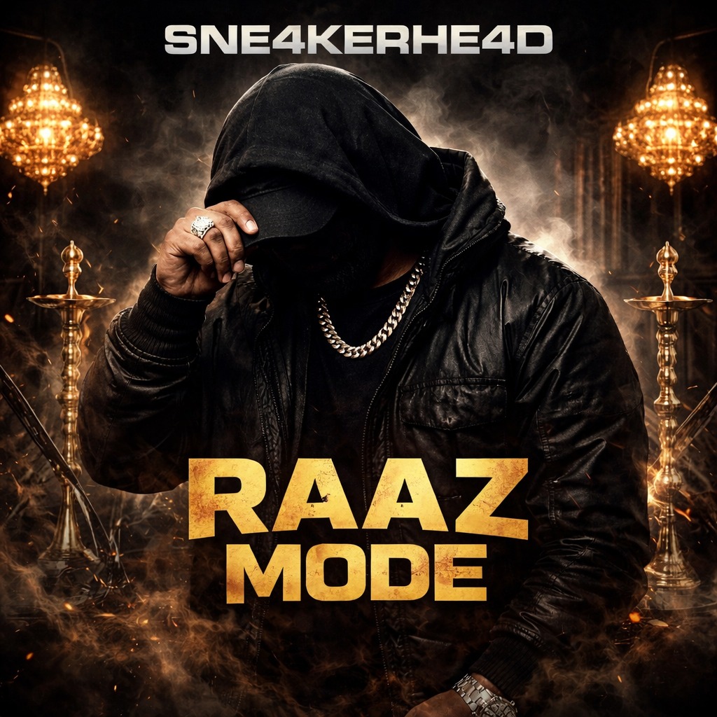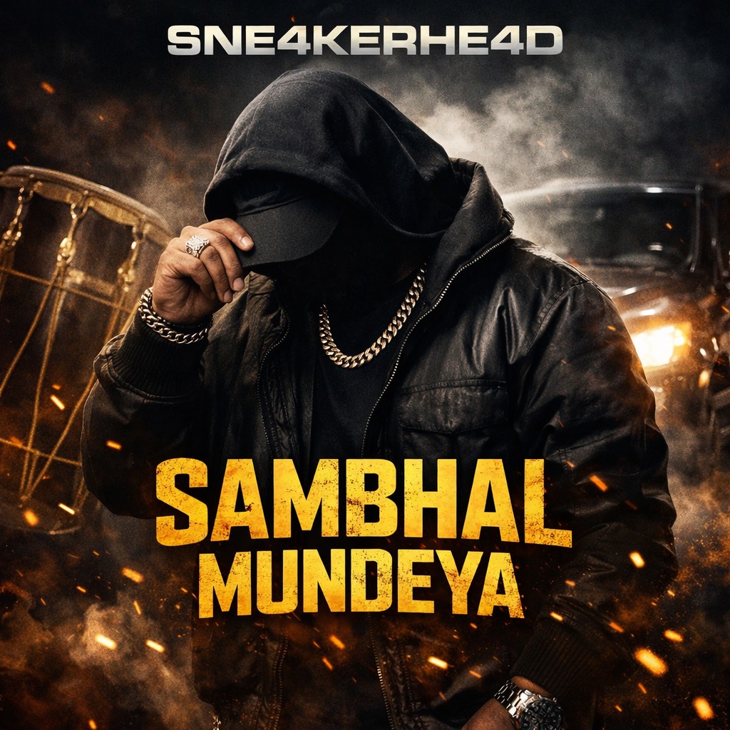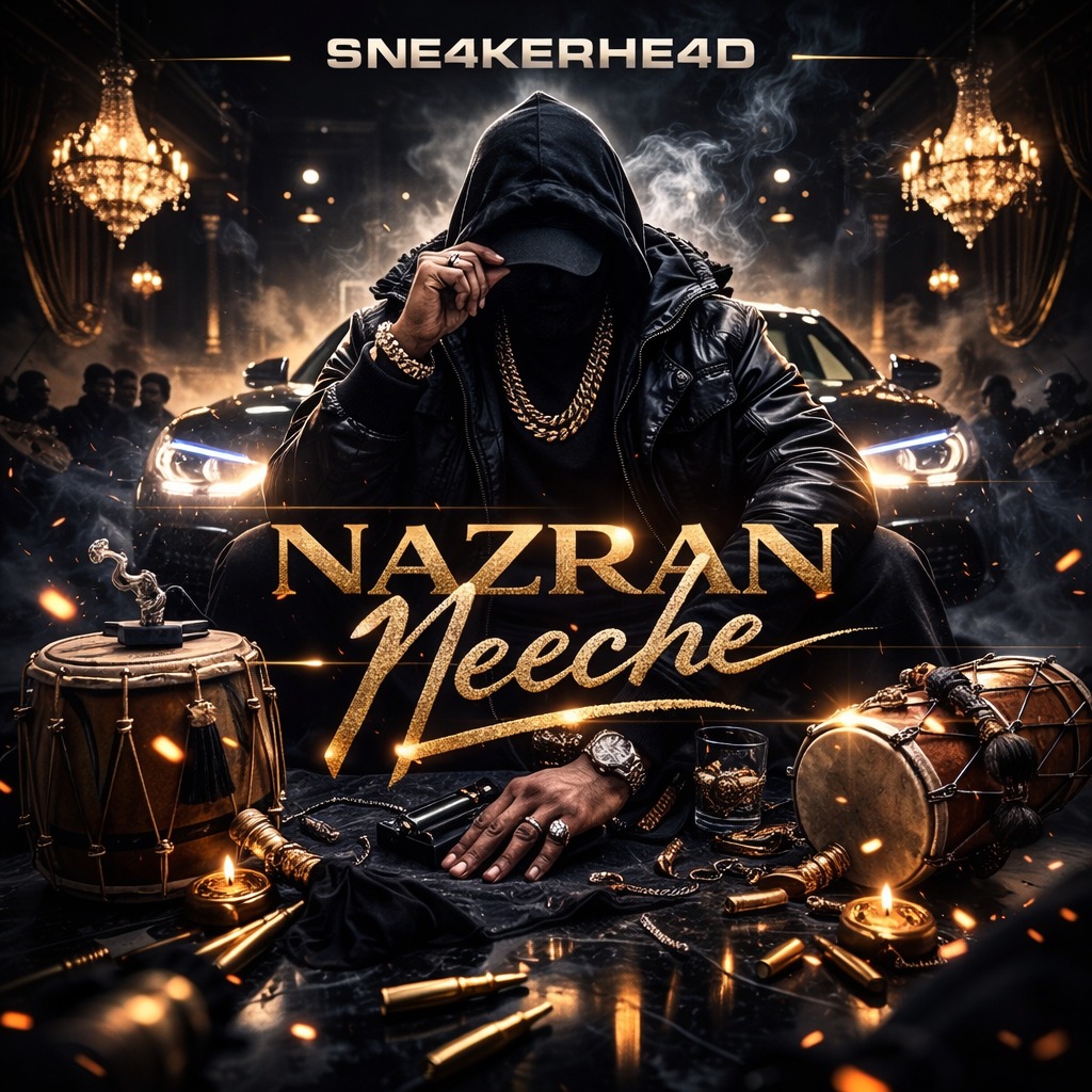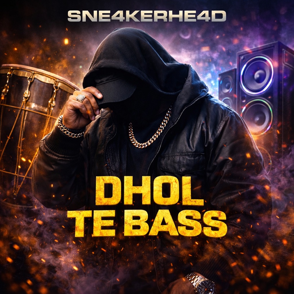 Dark luxury bhangra trap at 90 BPM, Immediate hypnotic hook in first 5 seconds, repetitive chant delivery with dominant calm energy, Punjabi male vocal only, Controlled, confident tone with rhythmic phrasing, slightly restrained delivery, minimal vibrato, Strong presence, low emotional exaggeration, chant-focused performance, Heavy deep 808 with slow glide and warm distortion, Minimal dark melodic motif inspired by Punjabi folk scales, Subtle but powerful dhol layered beneath punchy trap drums, Sharp snare on 2 and 4, wide spacing for dramatic weight, All drums cut for half a bar before major hook drop, brief vocal breath, then heavy full return, Mood: nocturnal, intense, commanding, mysterious, Energy: calm dominance, controlled menace, Clean modern mix, deep mono low end, loud but dynamic, club ready