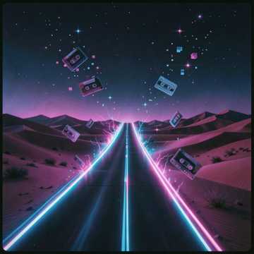 ambient electronic, 60 BPM, analog polysynth pad, crystal lead synth, tape delay, spring reverb, sub-bass drone, modal minor chords, stereo widening, granular ambience, cinematic space, slow harmonic drift, brushed fm textures, 80s wavetable sheen, vinyl crackle wash, synthwave mood, vaporwave drift