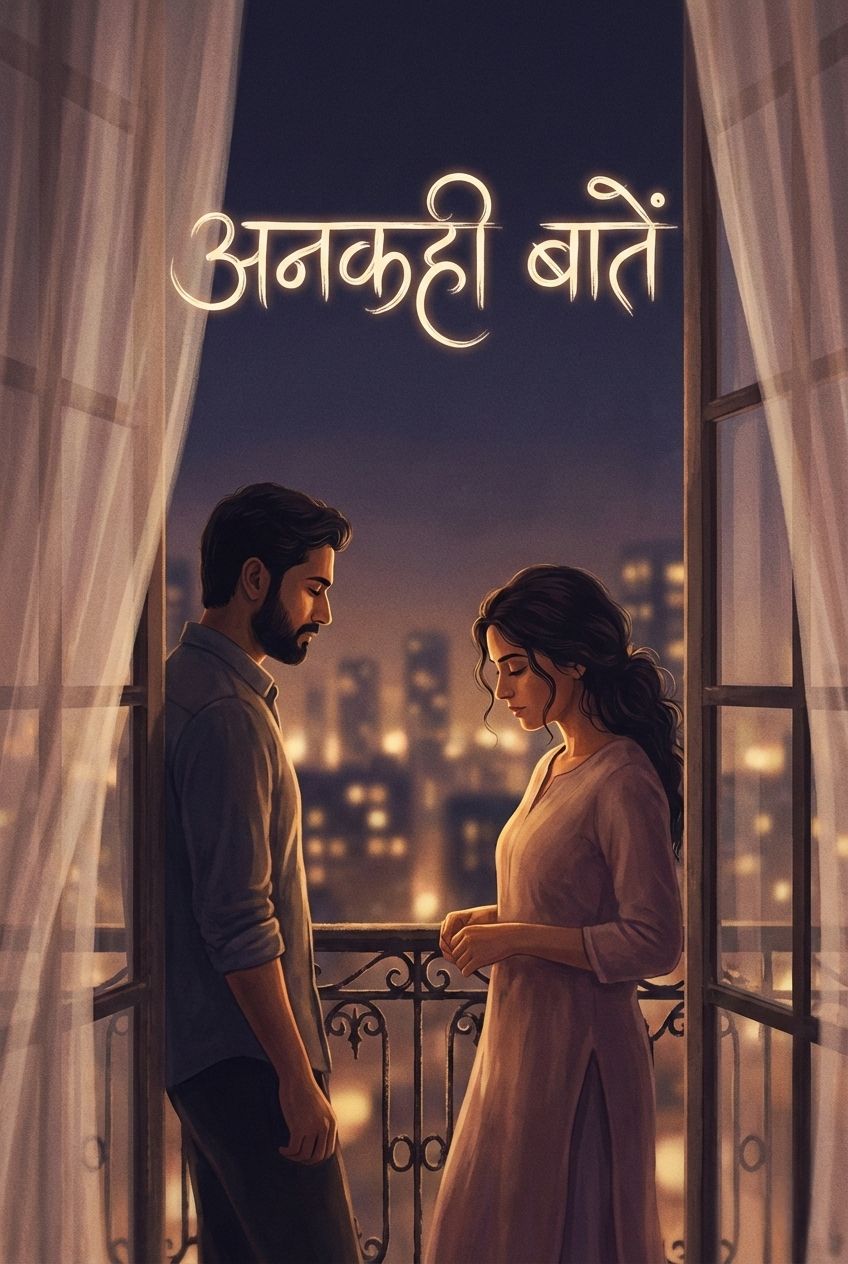 A soft, poetic Hindi romantic ballad about emotions that are felt but never spoken, Slow to mid-tempo, deeply intimate mood, Minimalistic arrangement with acoustic guitar or piano, warm pads, light strings, and gentle percussion, Breathy male vocals, expressive and close-mic, emphasizing breath, pauses, and silences, Lyrics are metaphor-rich, Urdu-influenced Hindi, focusing on eye contact, silence, unfinished sentences, shared stillness, and emotional restraint, No dramatic climax—emotion grows quietly and lingers, Night-time listening vibe, reflective, tender, cinematic but understated