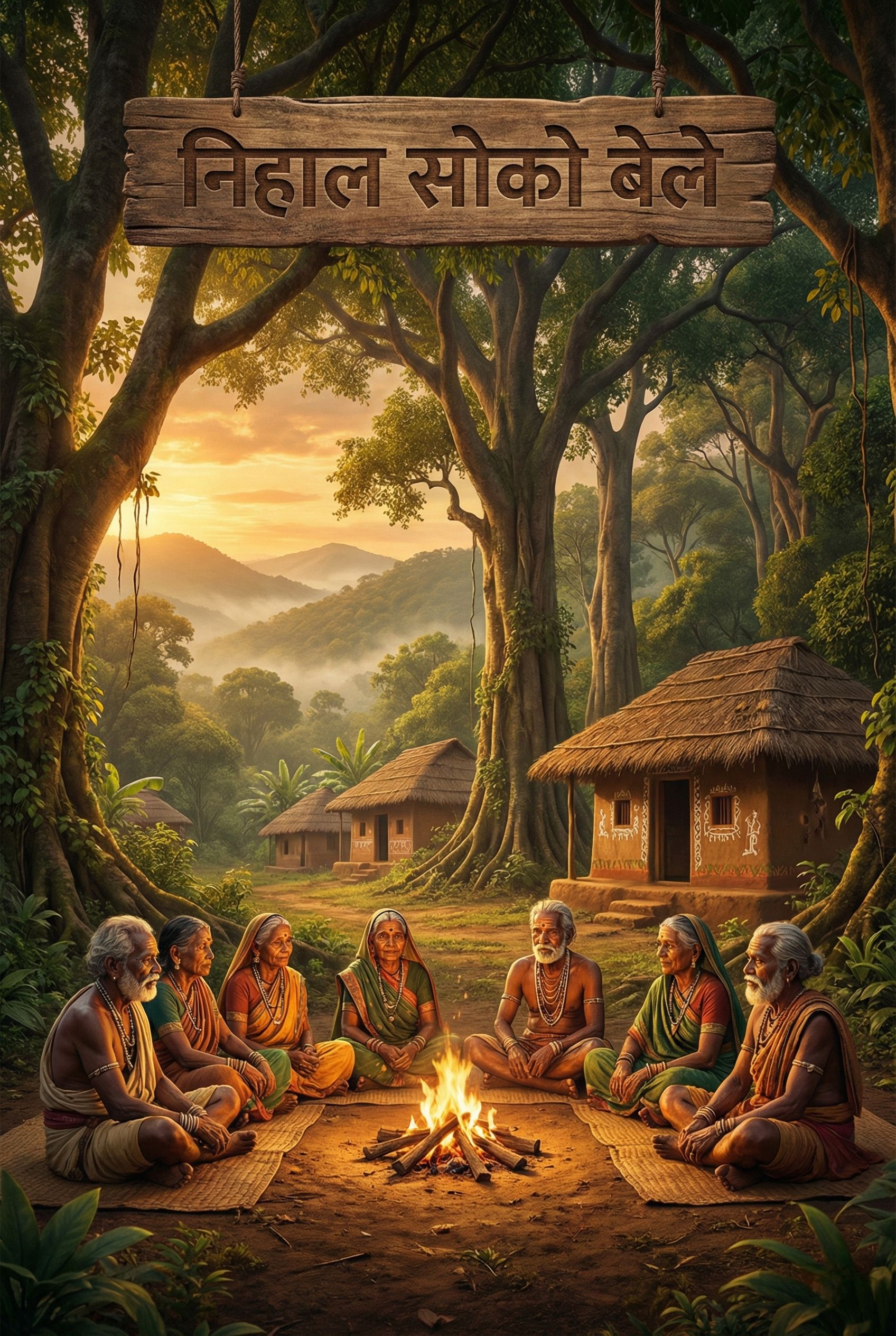 Central Indian Tribal Folk, Nihali language, authentic Dholak and Manjira percussion, bamboo flute, earthy male and female group vocals, raw and rhythmic, mid-tempo 80 BPM, soulful and traditional